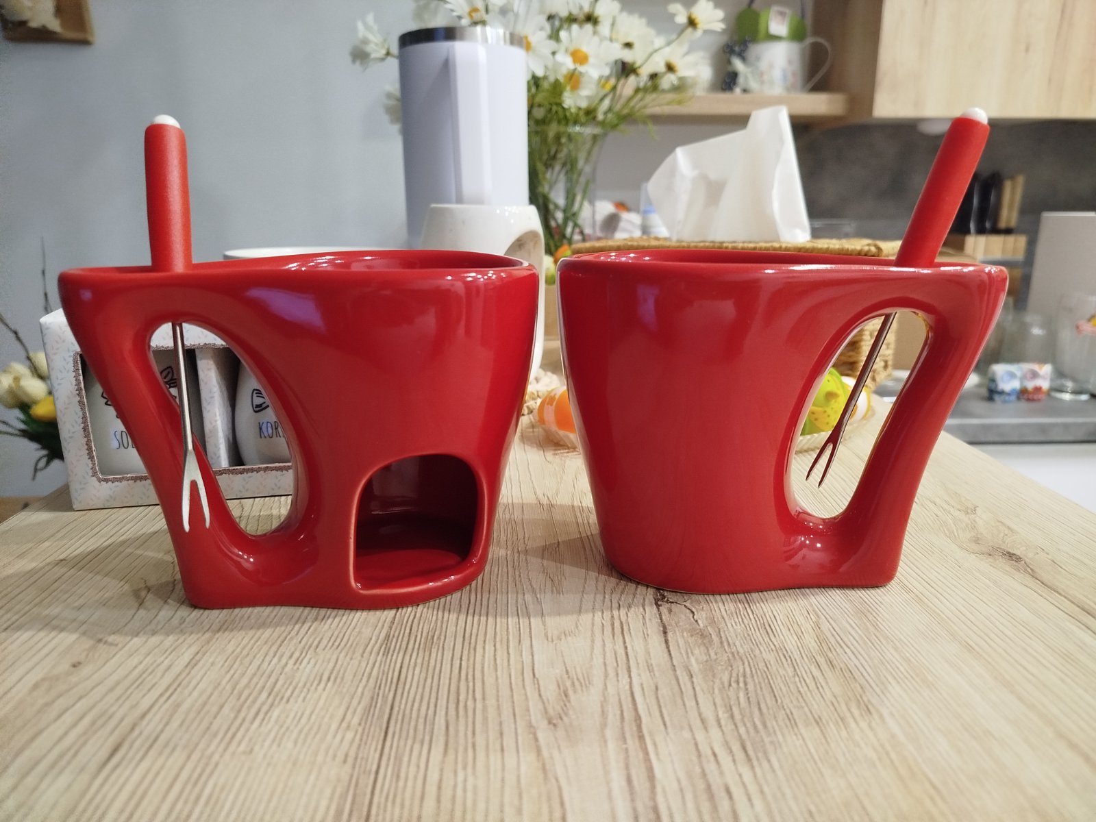 Predám set vhodný napr. Ako dar na svadbu ,pozostáva z dvoch pohárov na fondue ( do spodnej časti sa dá čajová sviečka a na vrch napr. Dve tabuľky čokolády, ktorá sa rozpustí a aj udržiava tekutá ,v úchytke je aj mala vidlička ), dva nepoužité hrnčeky s belasomodrymi srdiečkami) a solničku a korenicku - svadobné pre štastie. Iba osobný odber - Bratislava alebo Chorvátsky Grob.