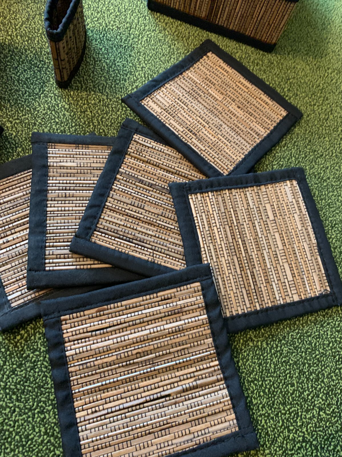 Bambusové podpivníky a krúžky na servítky, sada 6ks v krabičke.