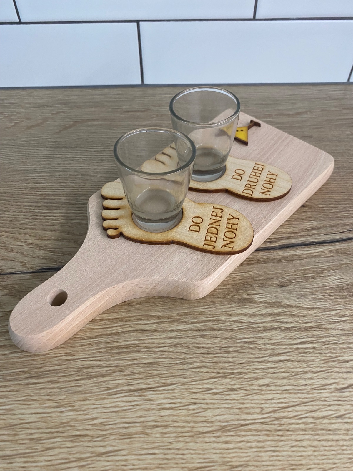 Drevený darčekový predmet so štamprlíkmi - DO 1 NOHY DO 2 NOHY