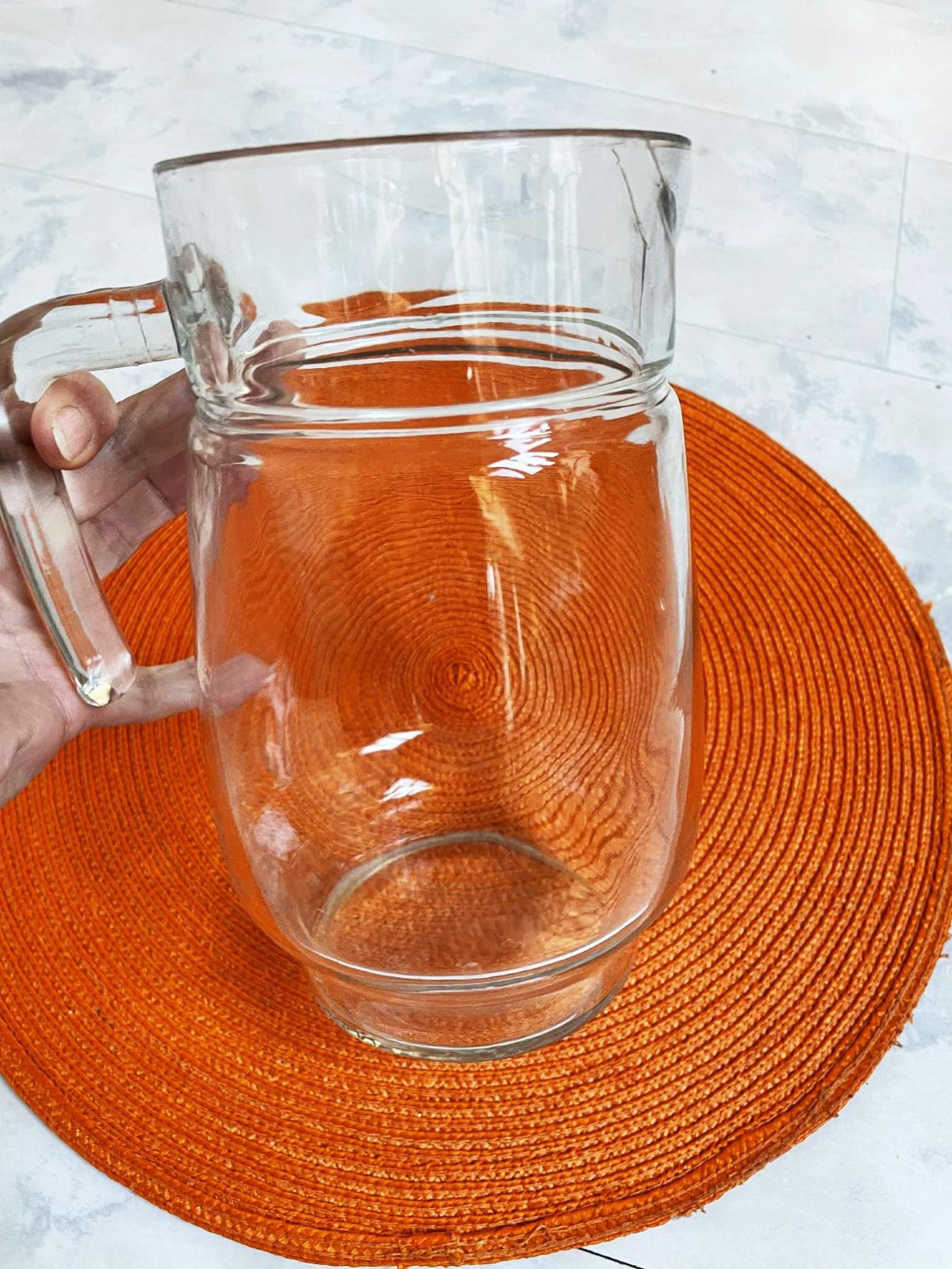 kvalitný nerozbitný džbán z hrubého skla,veľmi vkusný,vhodný na nápoje ale aj ako pekná váza,výška 21cm, šírka v najširšej časti 15 cm
