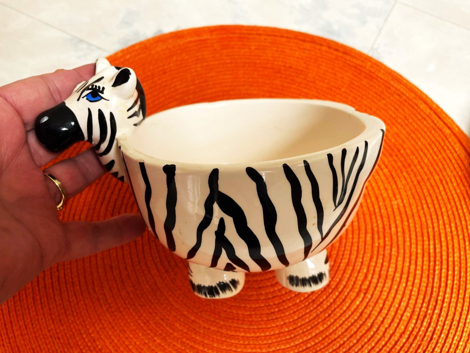 krásny vzor,hrubší porcelán,výška nádobky s nožičkami bez hlavy zvieratka = 10 cm,priemer = 13 cm,min. používaná,