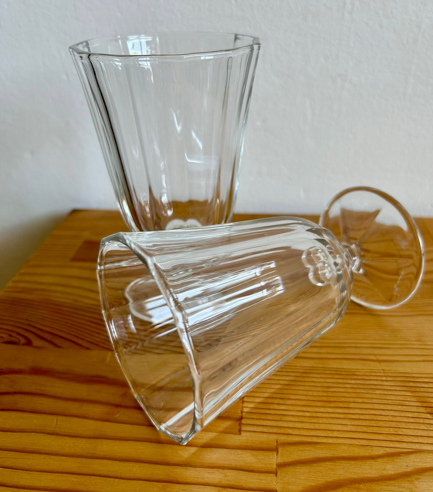 Predám 2 ks poháre na stopke na víno zn.ZARA HOME. Reliefny brúsený dizajn, masívne sklo. Objem 250 ml, výška 13,2 cm Aktuálne sa predáva za 4€/ks. Moja cena je za obidva poháre 5€.