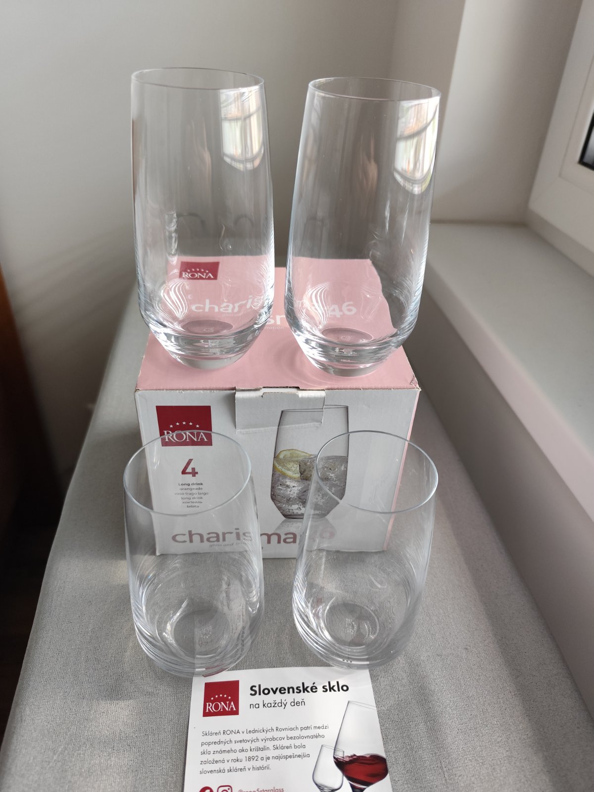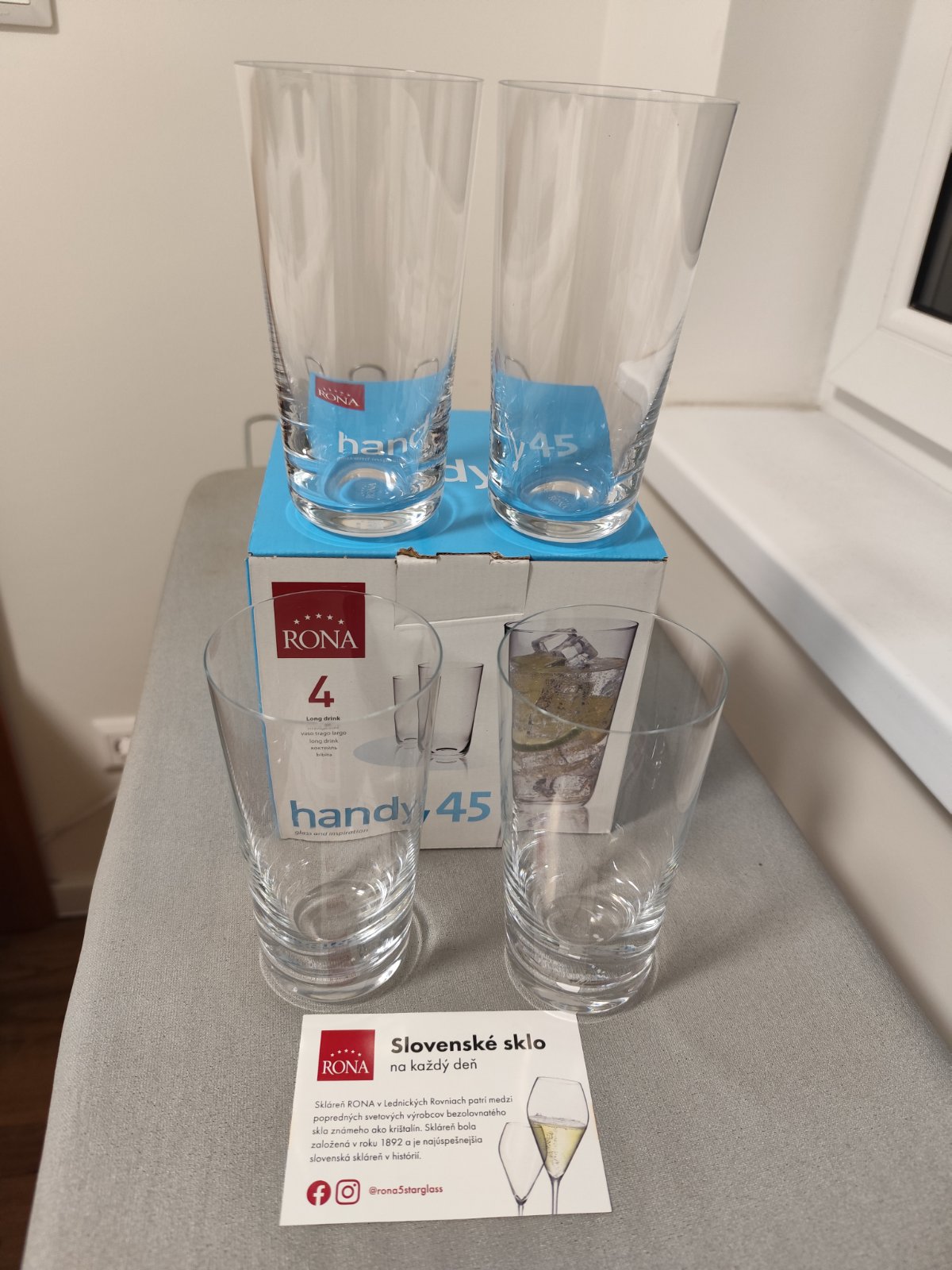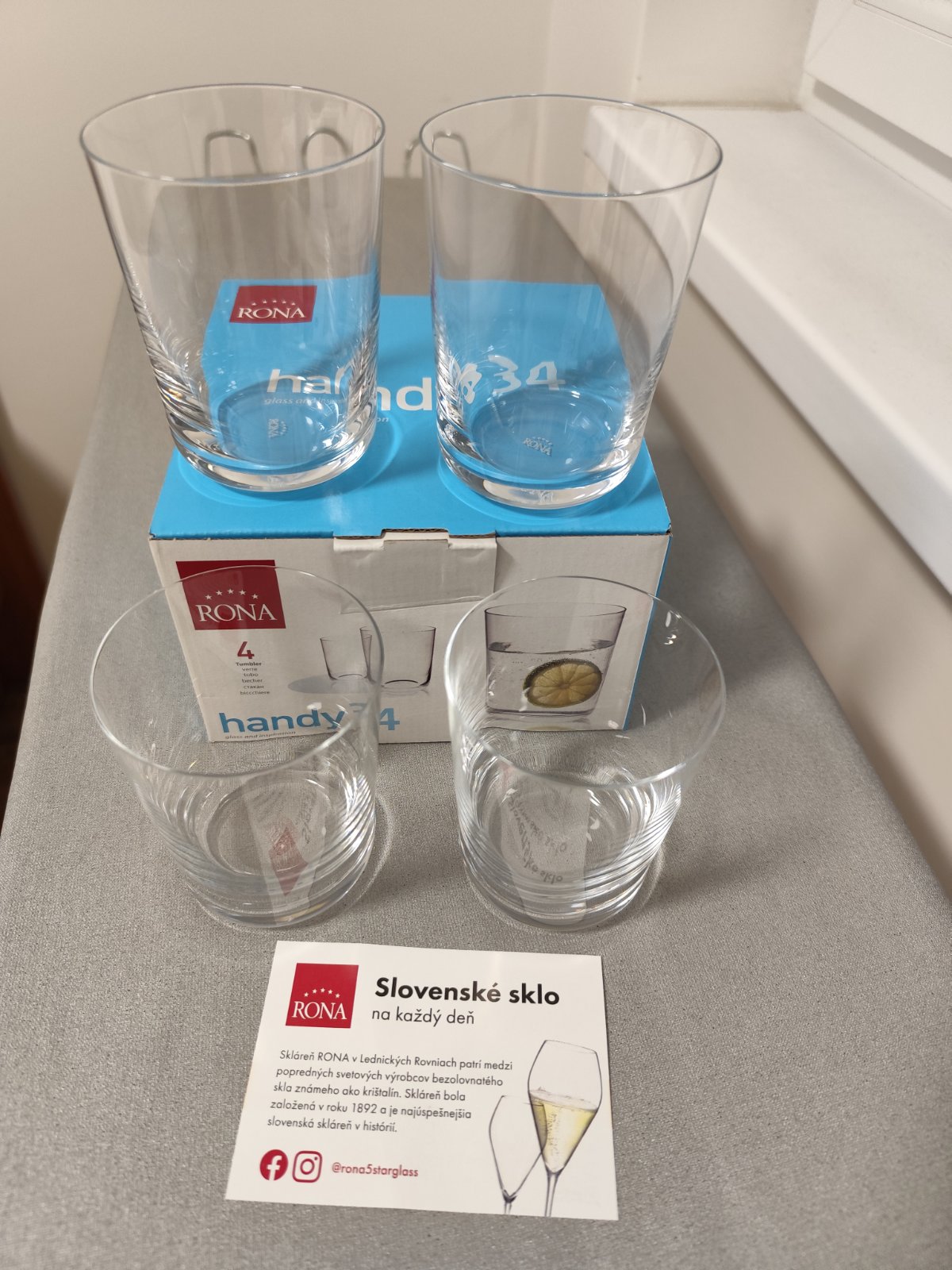 Nové, nepoužité poháre, značka Rona, kvalitné a odolné poháre, slovenská značka, 4 kusy v balení.