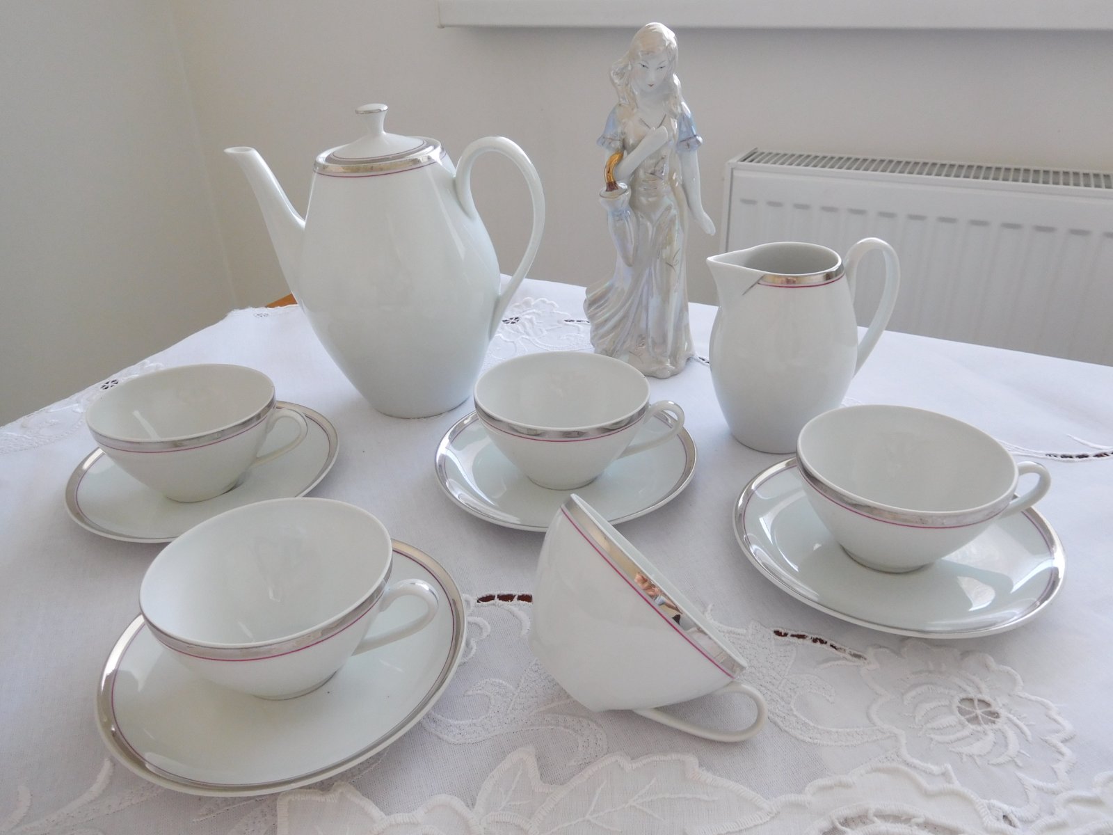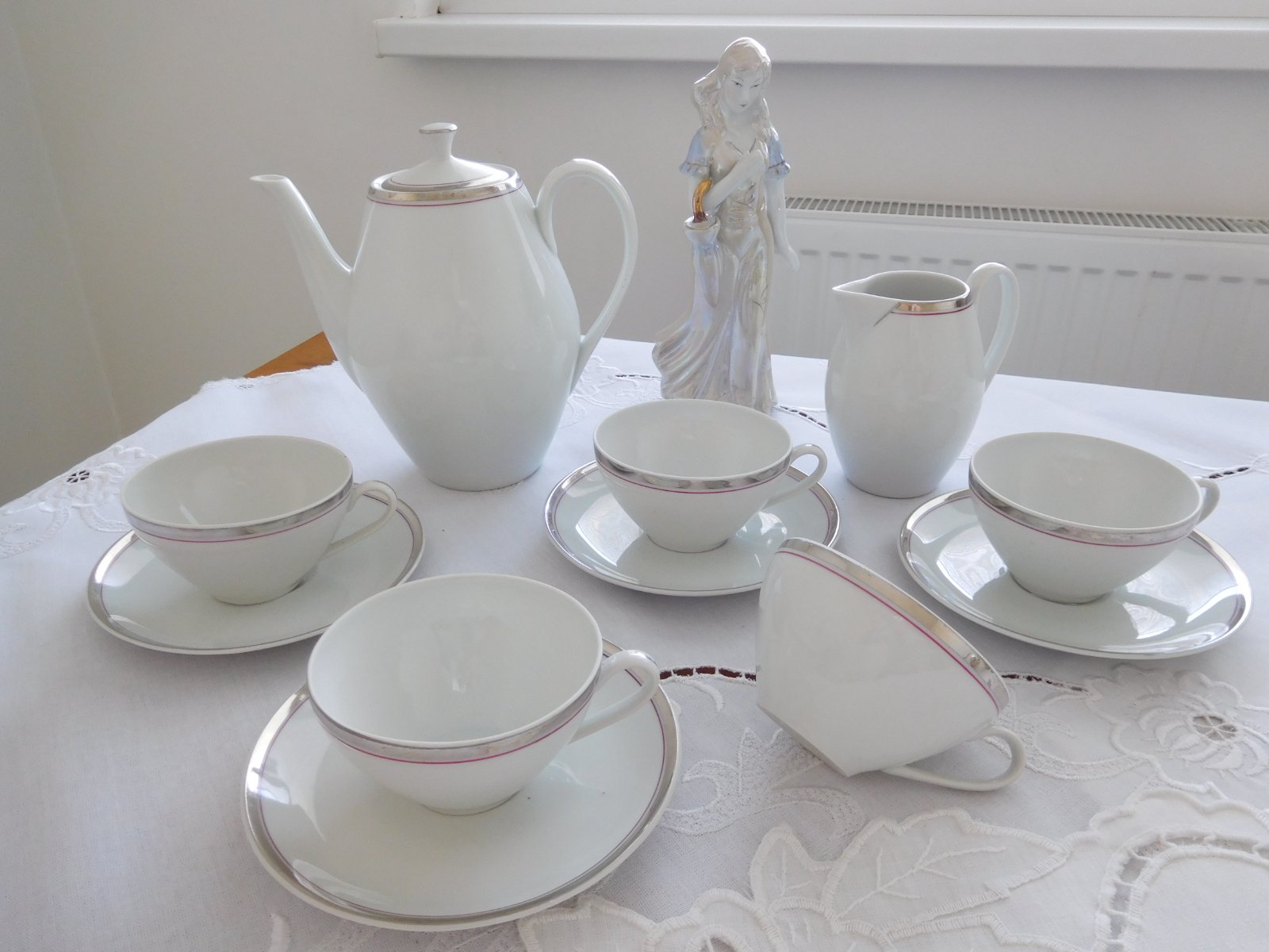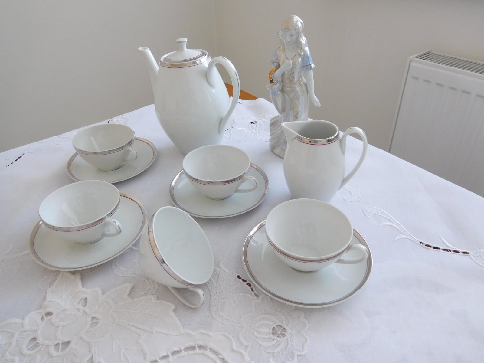 Biela porcelánové šálky so strieborným lémom-Čechoslovákia-EVA