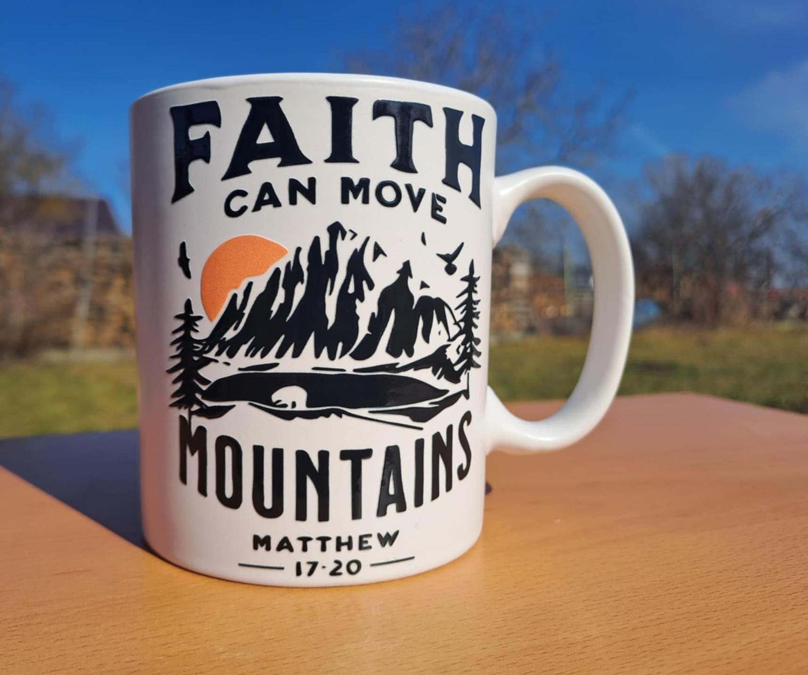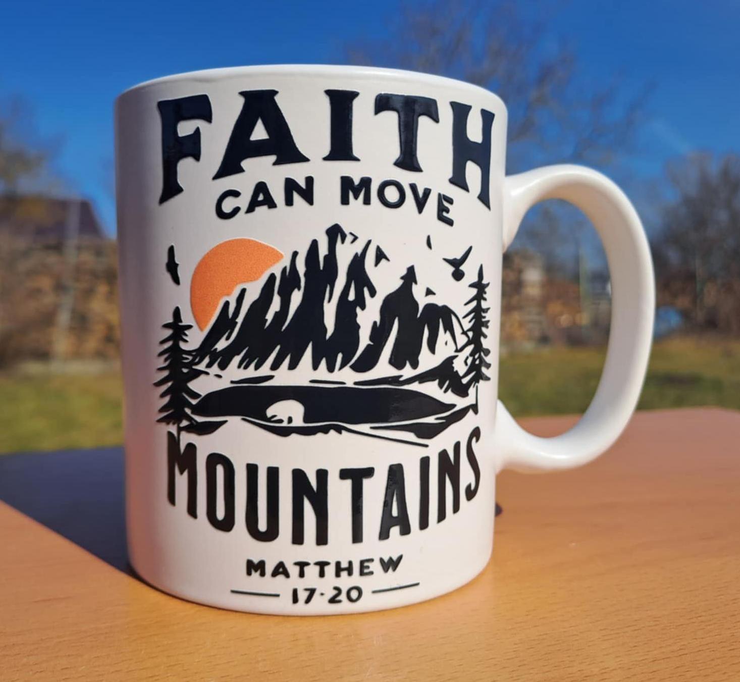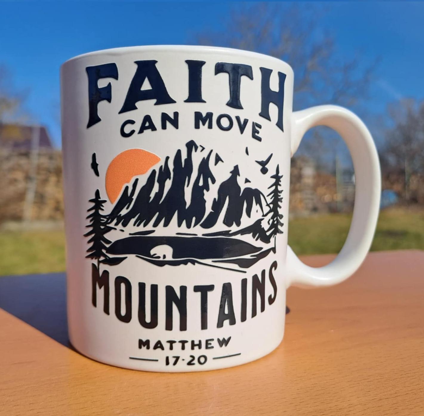 Keramický hrnček biely Faith can move mountains (Viera môže hory prenášať )