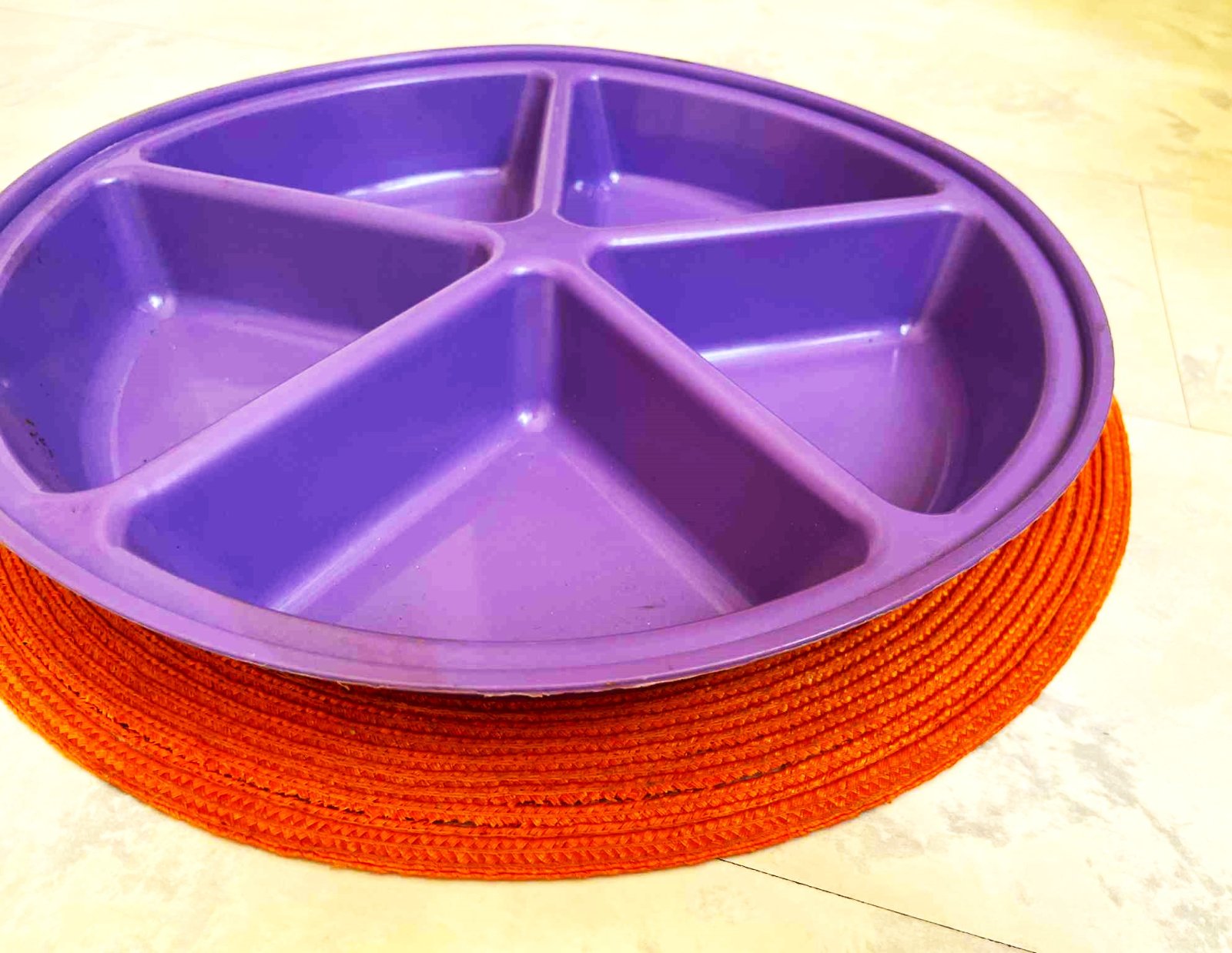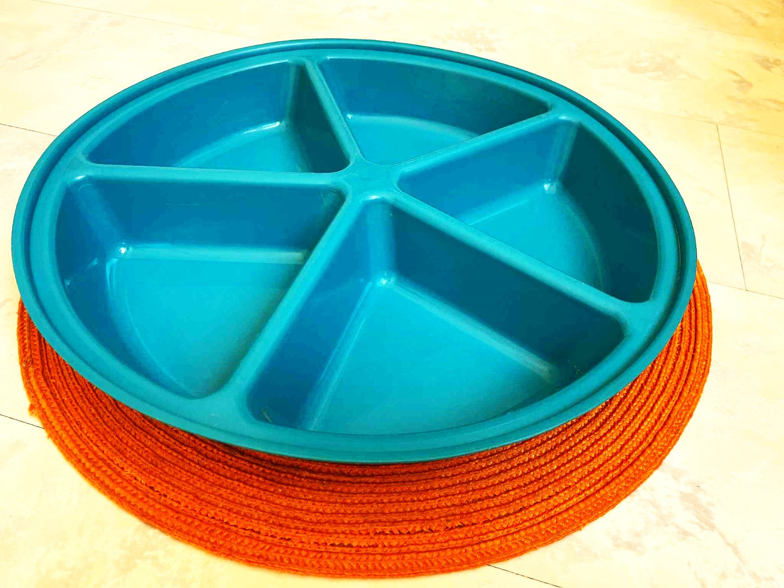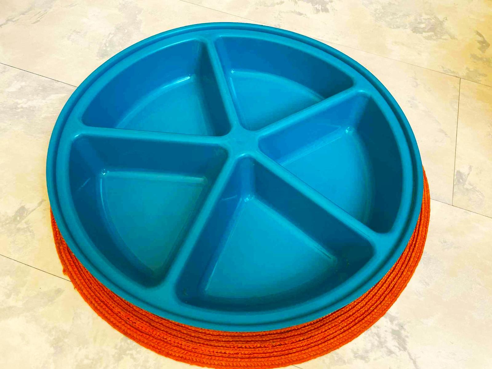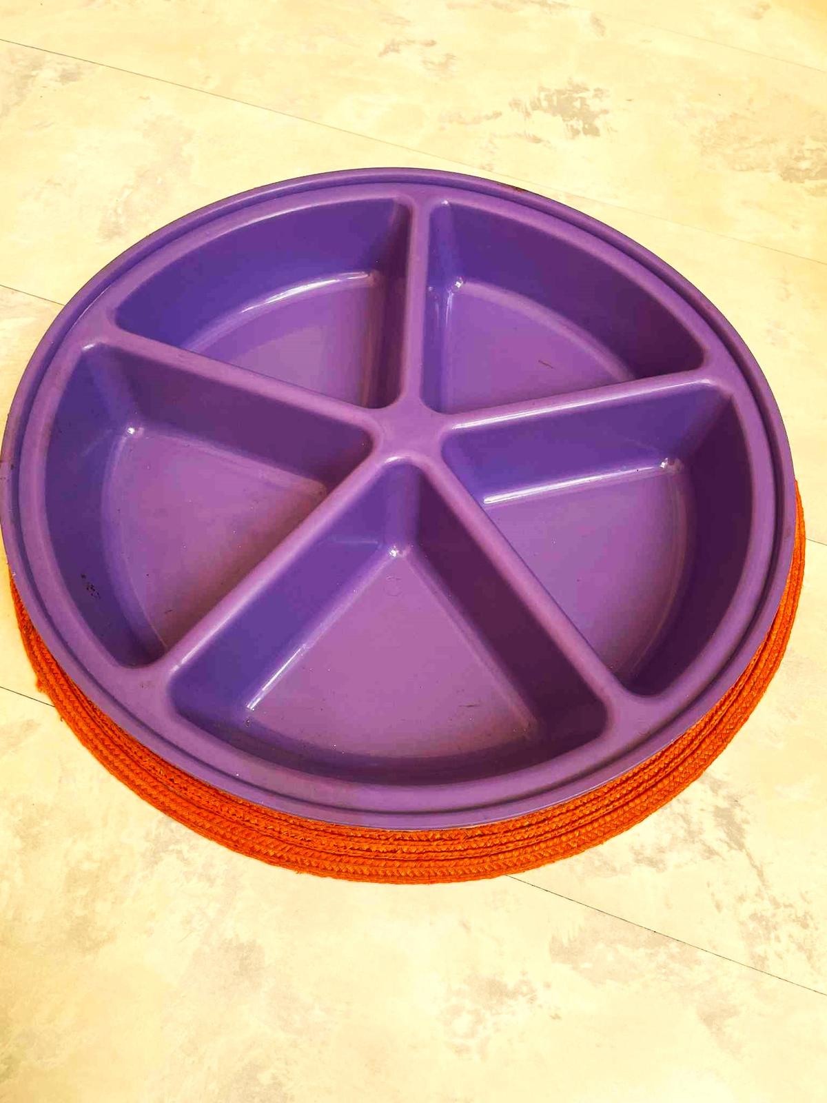 perfektné misky s oddelenými časťami,výborné na grilovačku - na zeleninu,horčicu,kečup,dresing,všetko je pekne oddelené,ľahúčke a skladné,kvalitný plast,vhodné aj na iné mnohostranné použitie,alebo na oddelenie jednotl. druhov zeleniny,resp. na drobné chipsy a oriešky,alebo ako organizér napr. na bižutériu alebo gombíky,priemer 33 cm,výška 5 cm,cena je za 1 ks