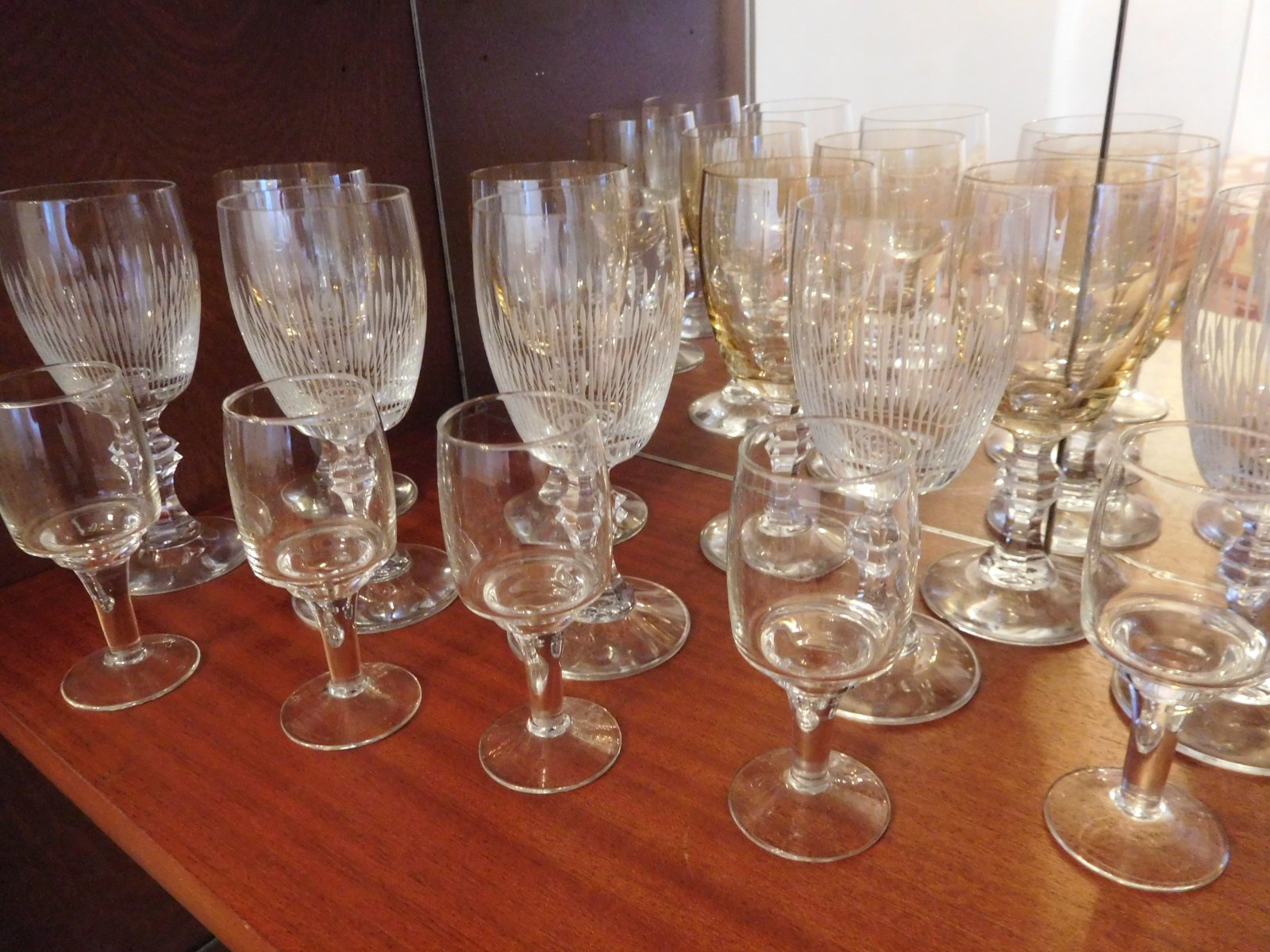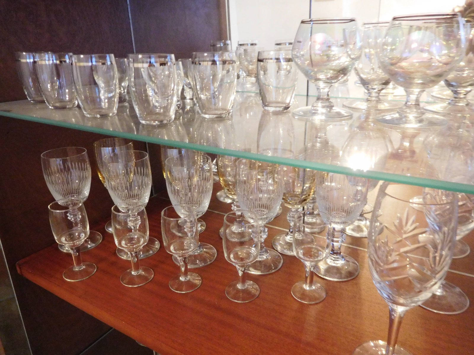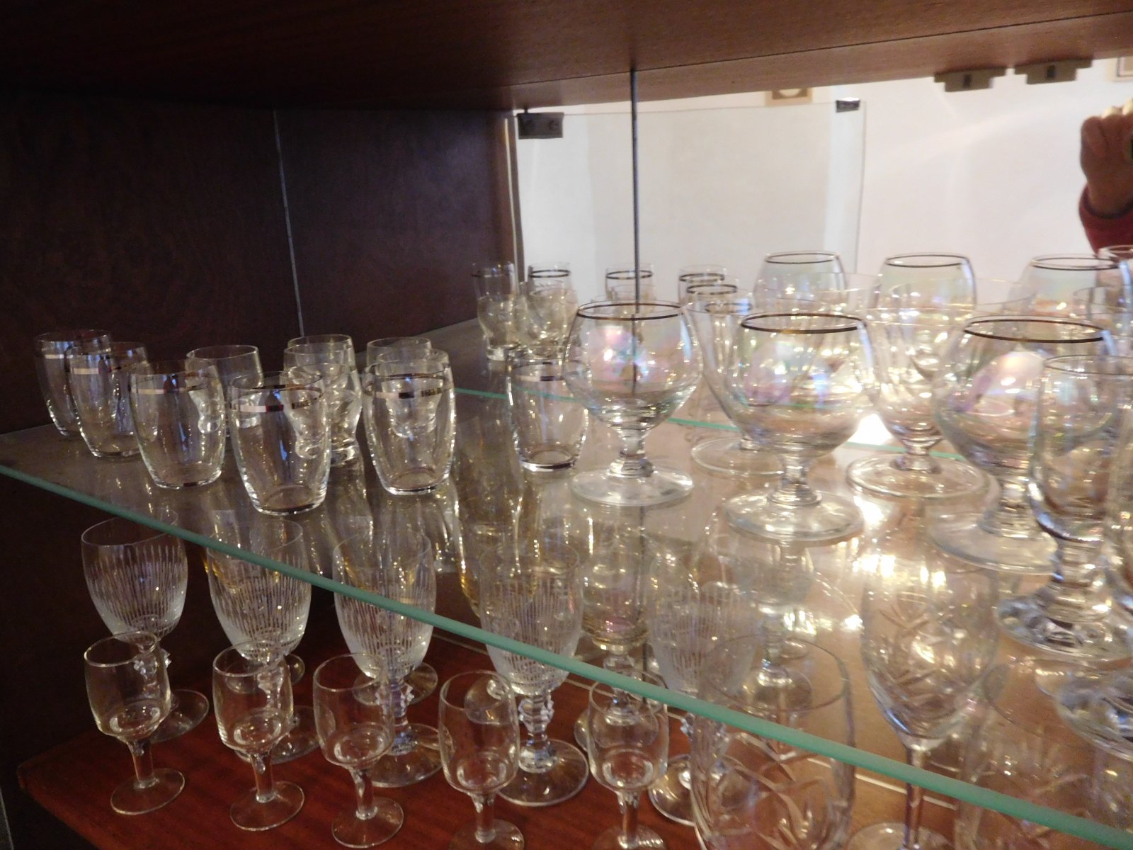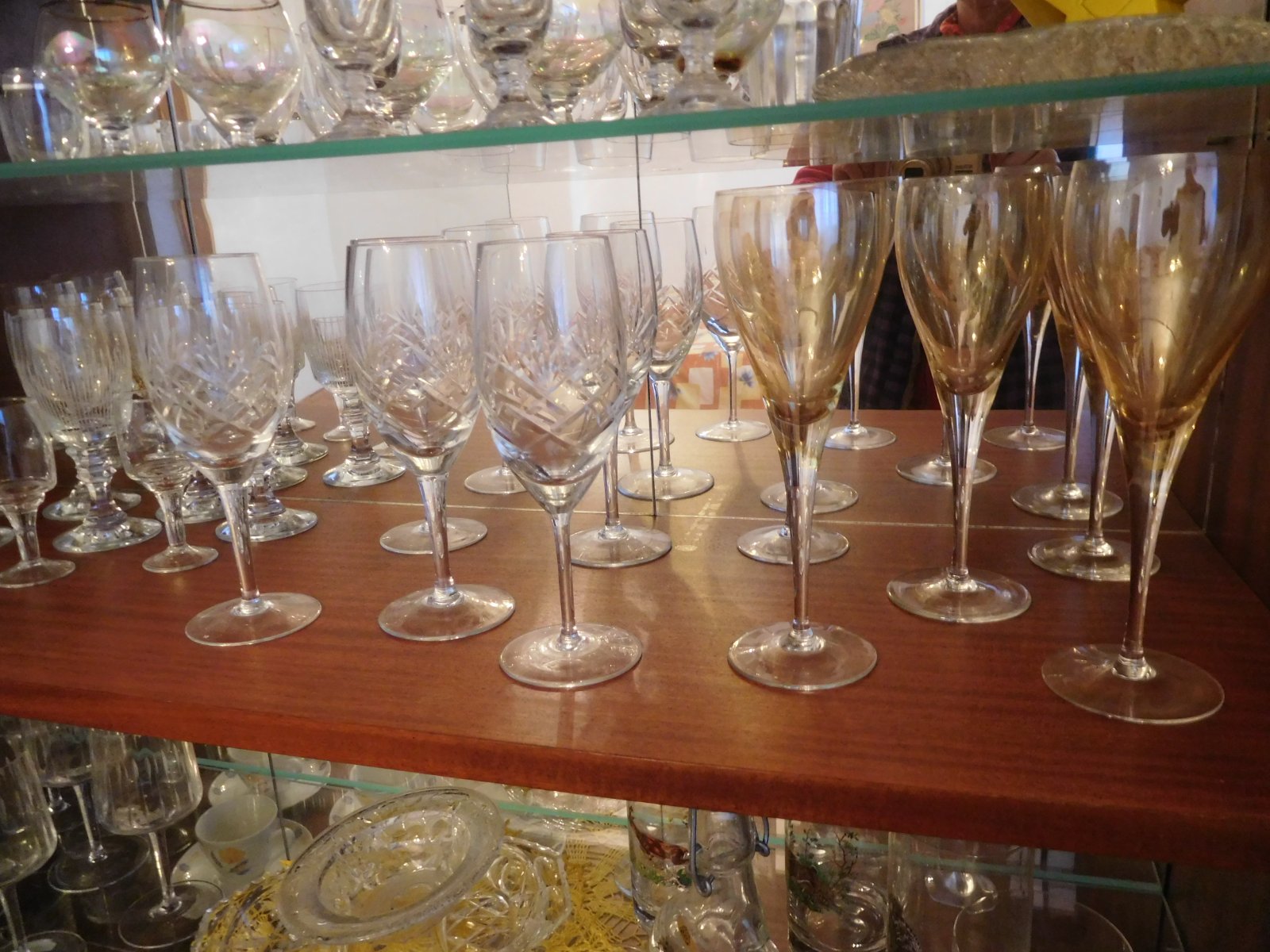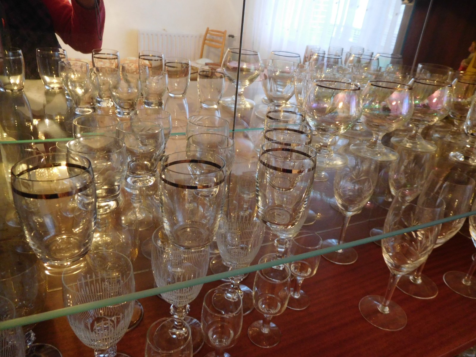 Ponúkam na predaj tieto dve vyložené poličky všetko čo je ne nich -predaj spolu, sú tam viď foto, rozne poháre na nožičke menšie vačšie, IBA PRIAMY odber, určite Vám toho nabalím viac, v dome sa nebýva je potrebné ho zredukovať s obsahom,