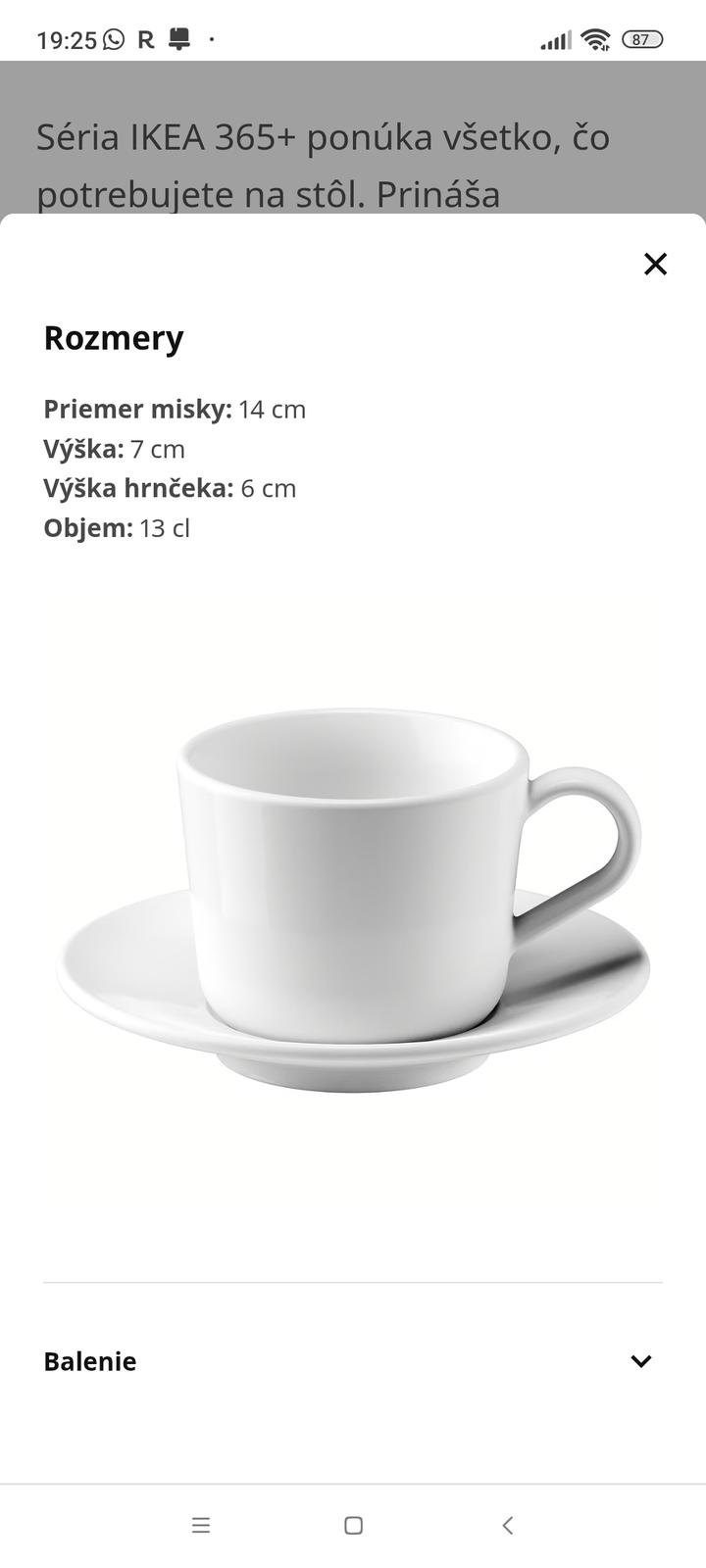 Šálky na kávu. 6x šálka a tanierik. IKEA.