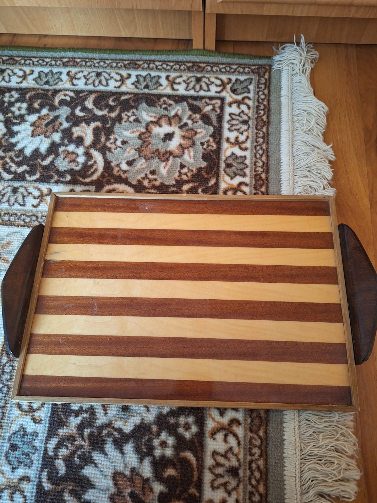 rozmery 36x25. Drevený podnos z lakovaného dreva s uškami
