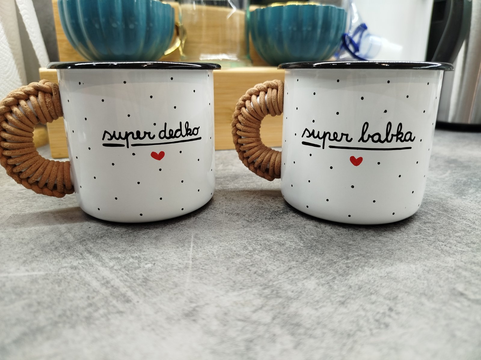 Predávam tieto dva herčeky, sú to ručne vyrábané, na zákazku ,ale predajcu si už nespomeniem ( niekde na Sashe). Týmito hrnčekmi sme ,,oznamovali,, príchod prvého vnúčika. Keď nám ich predajca posielal, niekde sa na ceste k nám stratili a tak nám vyhotovil a poslal nové. No a o mesiac nám prišli aj tie ,,stratené,, takže sú navyše. Niesu použité, sú krásne prepracované, smaltovane a uško je opracovane kožou.