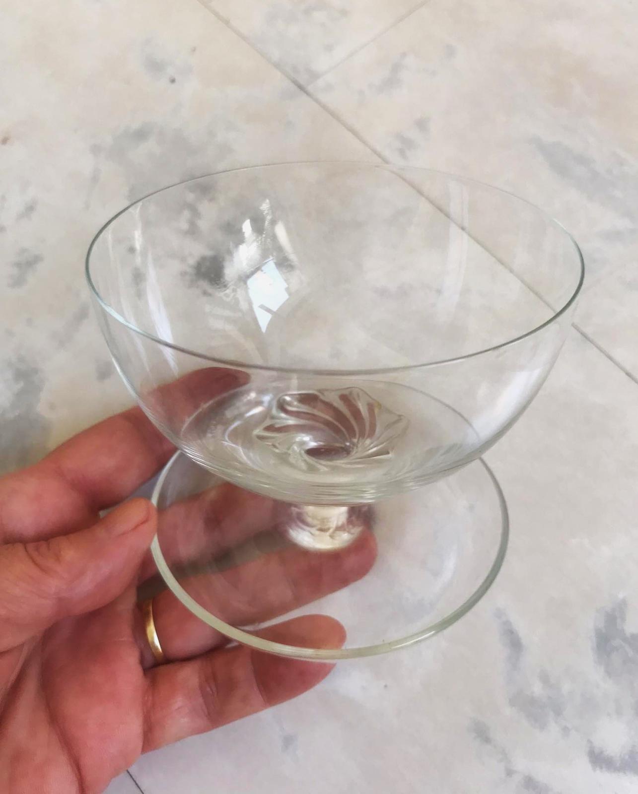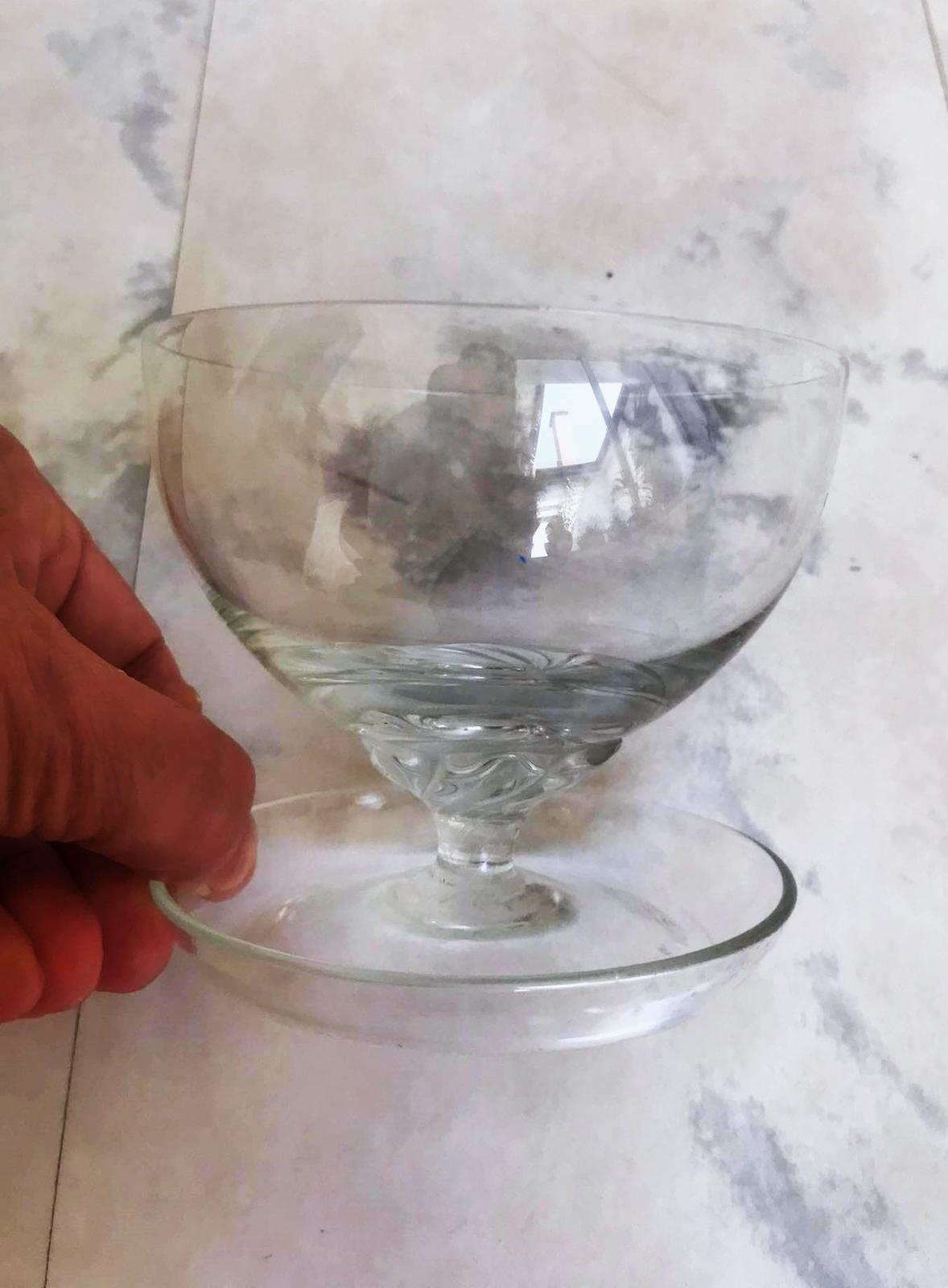 minimálne používané,na stopke,krásny jednoduchý nadčasový dizajn,kvalitné sklo,vhodné na pudingy,zmrzlinu,dezerty,tiramisu,kompóty a podobne,v prípade záujmu mám 6 ks,cena je za 1 ks