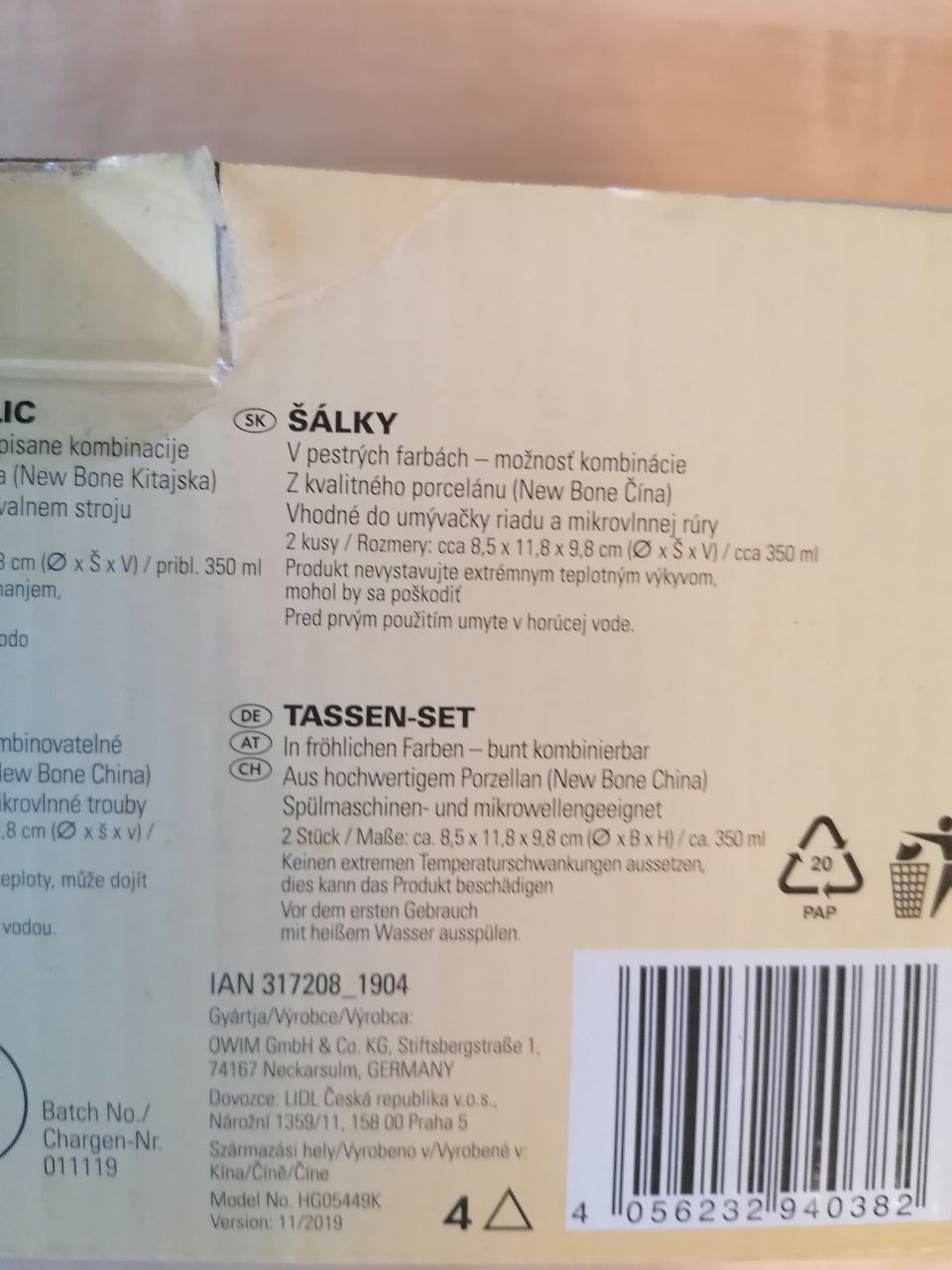 Nové šálky, aj s krabicou. Nikdy neboli použité., iba to sedelo v skrini. Nevhodný (alebo skôr zbytočný) dar.