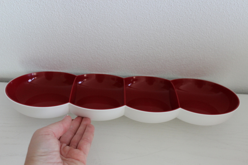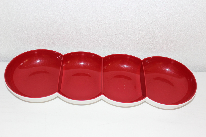Kvalitný servírovací podnos značky Tupperware v bieločervenej kombinácii. Minimum používaný.
