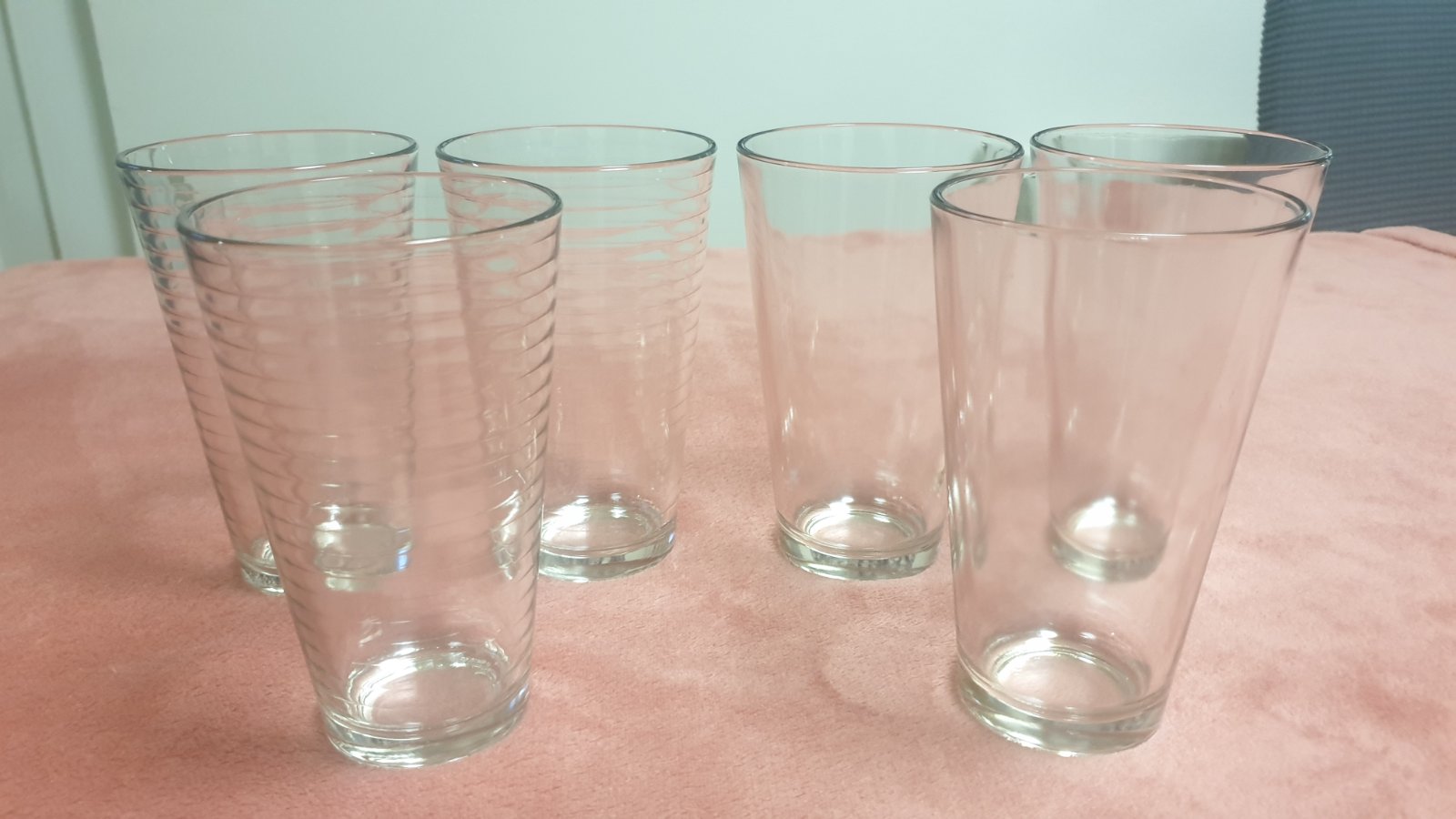 Predám 6 kusov hrubo sklenených pohárov, výška 15 cm, objem 4 dcl, cena 8 eur plus poštovné.