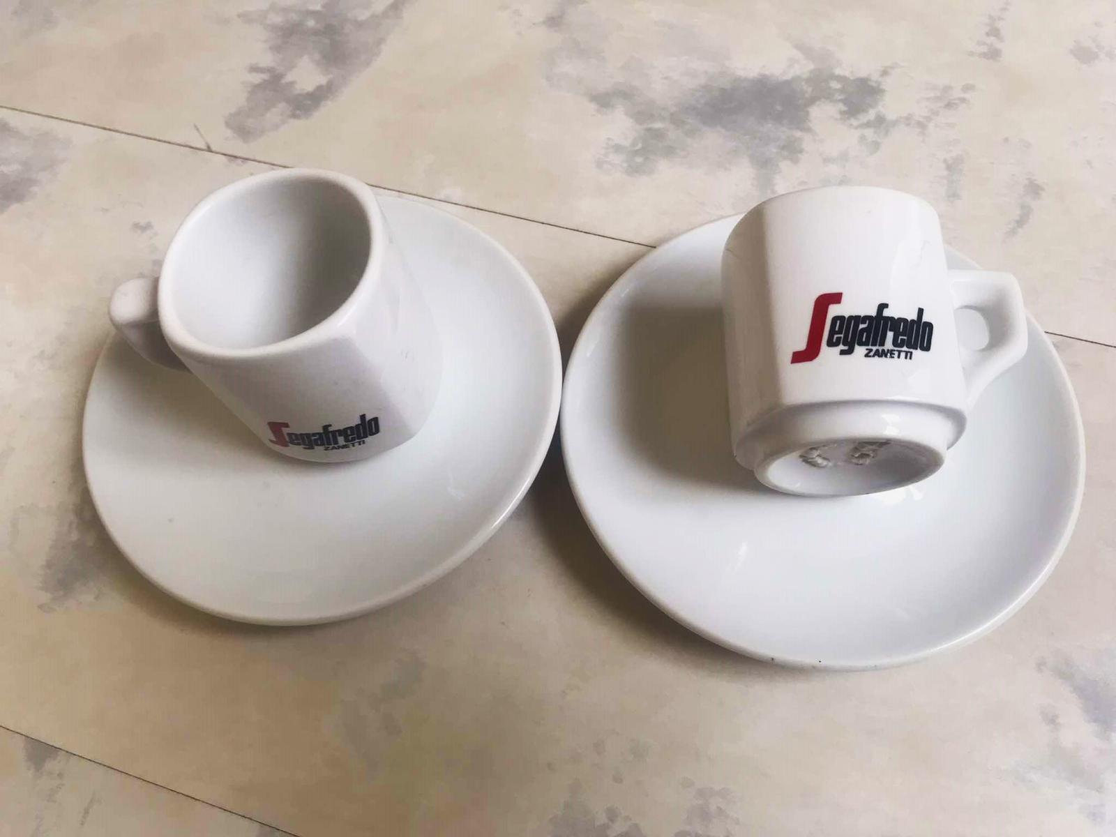 Segafredo - biela porcelánová šálka s tanierikom,160 ml ,cena je za obidva ks