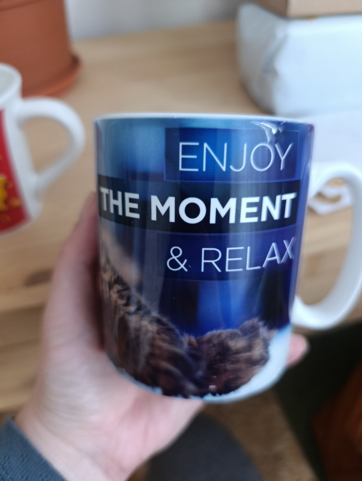 ☕S mačkou cca 220ml trošku oškretý vzor. Cena 1€