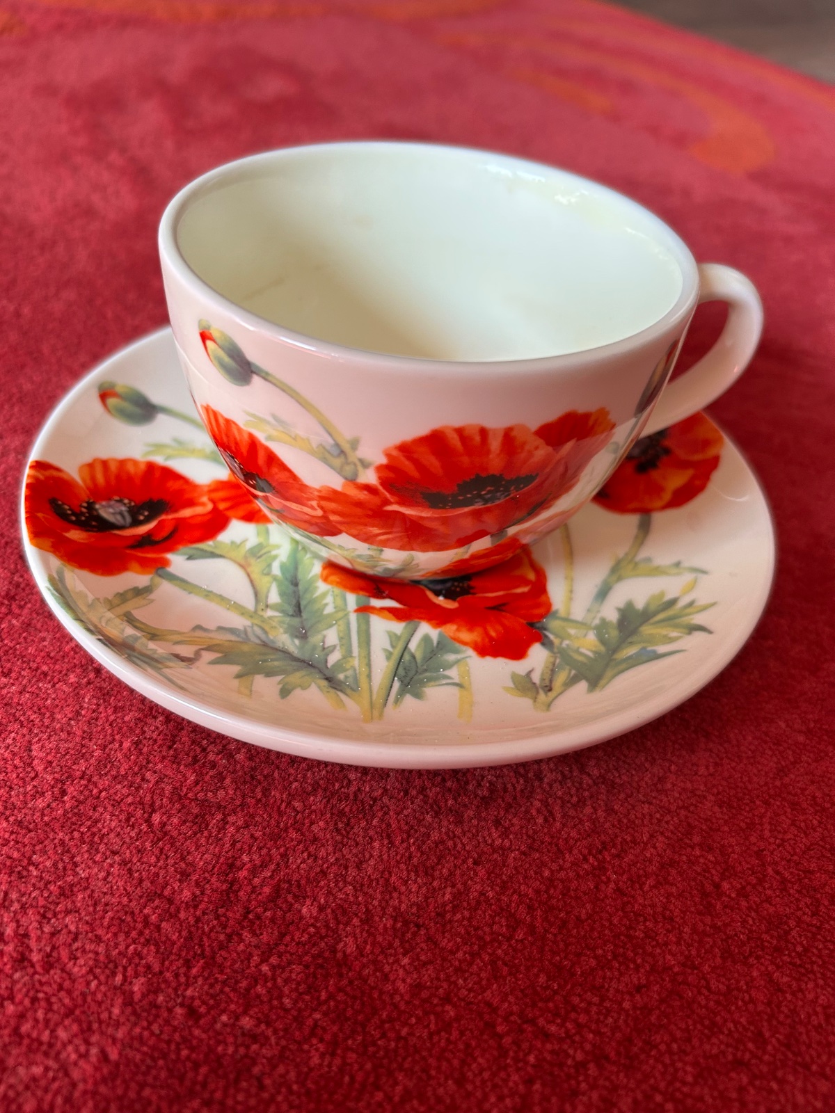 Predám - Čajova súprava vlčie maky, vyložená ako dekorácia , vhodná aj ako darček, osobný odber