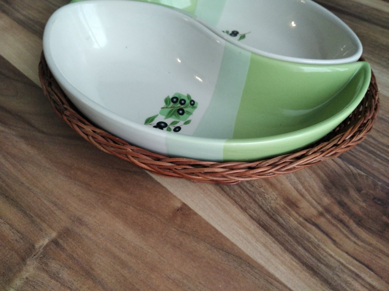 Predám košík s porcelánovými miskami v top stave, cena 8 eur plus poštovné.