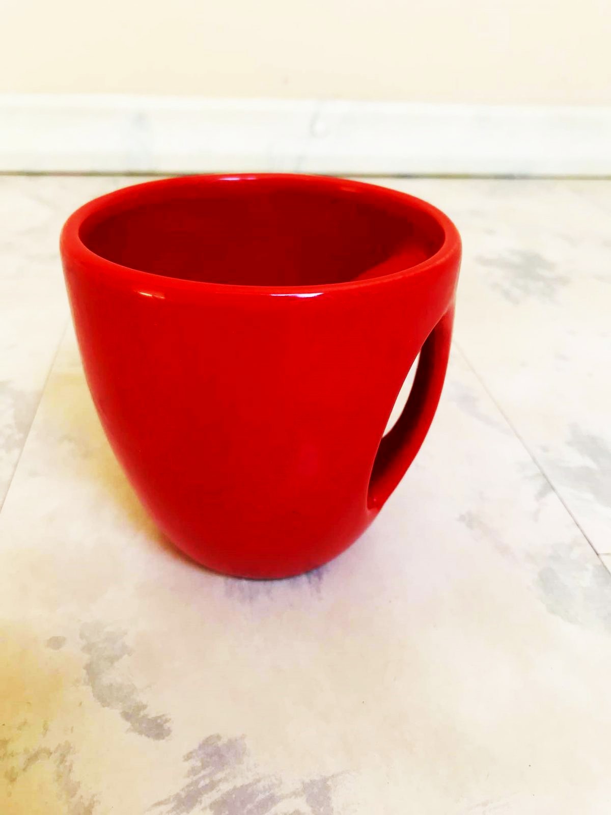 krásna pestrá koralovo červená zaujímavá šalka na kávu/čaj,atypická a preto zaujímavá,1 x použitá - ako nová,top stav,výška 10 cm, horný priemer = 10 cm,farba krásna lesklá koralovo červená