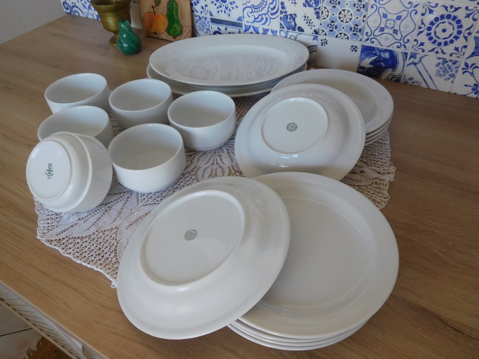 Biele porcelánové značené taniere misky na komp/po