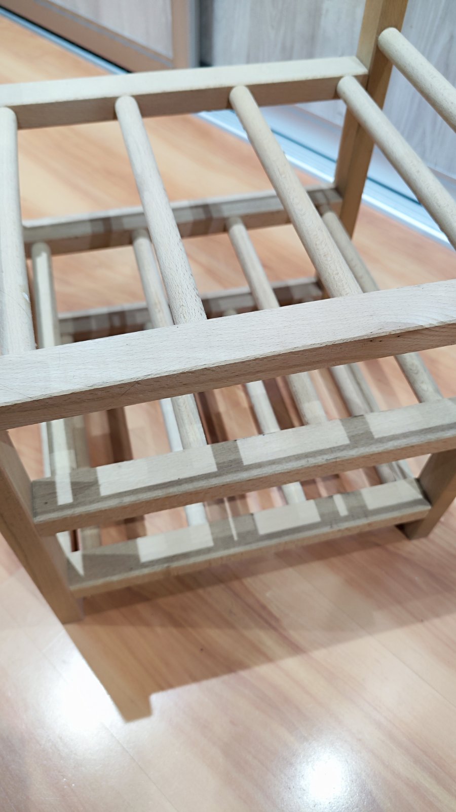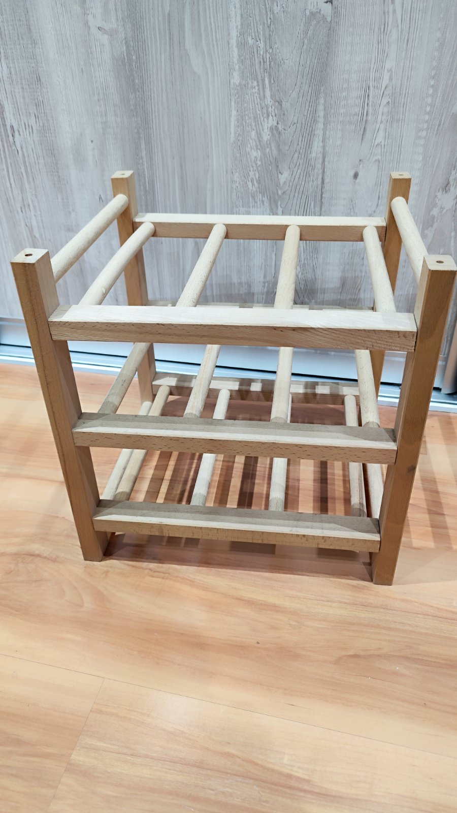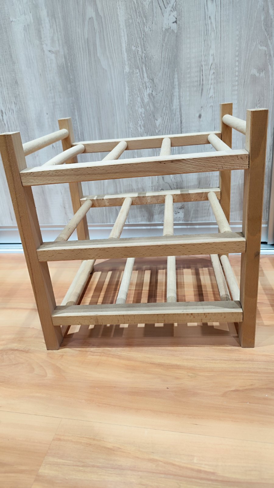 Priestor na 9 fliaš na džús alebo víno, a ak vám to nestačí, môžete na vrch uložiť druhý stojan – a umiestniť ešte viac na obe strany. Chcete, aby ladil s vašim zariadením? Drevený povrch sa ľahko natiera.