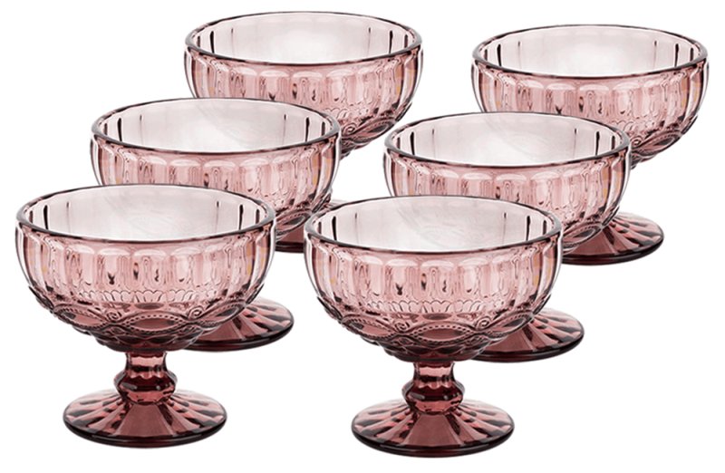 KONDELA Poháre na zmrzlinu, set 6 ks, 300 ml, ružová, vintage, FREGATA TYP 5
