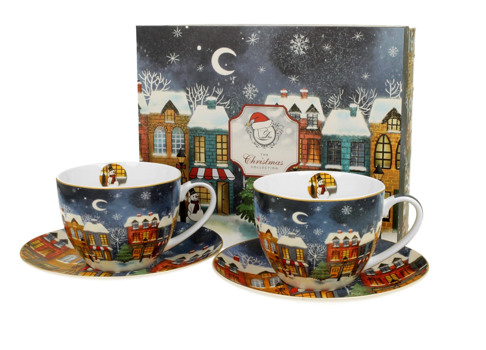 Vianočné šálky s podšálkami....2x šálka, 2x tanierik. Objem šálky 250 ml.