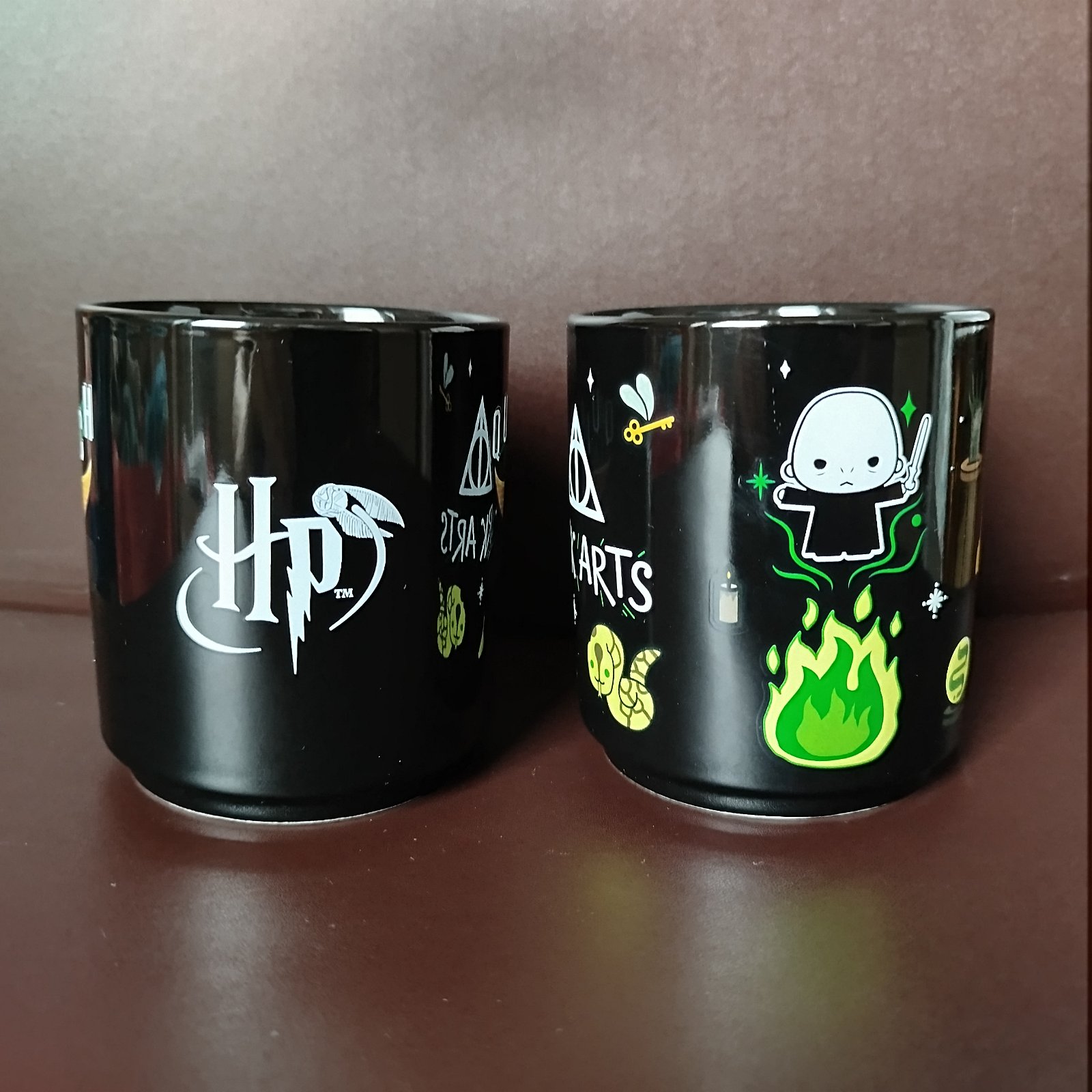 Sada čajových šálok alebo hrnčekov Harry Potter, top stav. Boli použité len raz zo zvedavosti, jeden svieti v tme, na dvoch sa objavia obrázky keď sa naleje teplá voda na čaj. Cena a predaj LEN SPOLU + pošta.