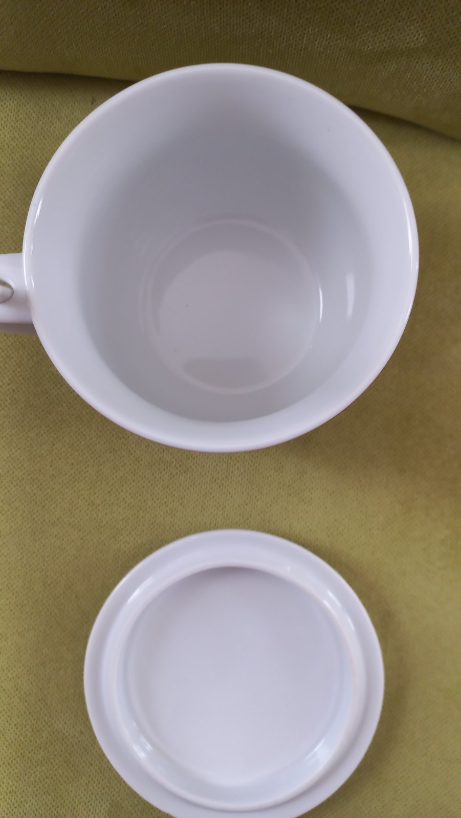 Veľký hrnček s vrchnákom a lyžičkou. Obrázok vpredu aj vzadu. objem 600 ml. Rozmer 11x12