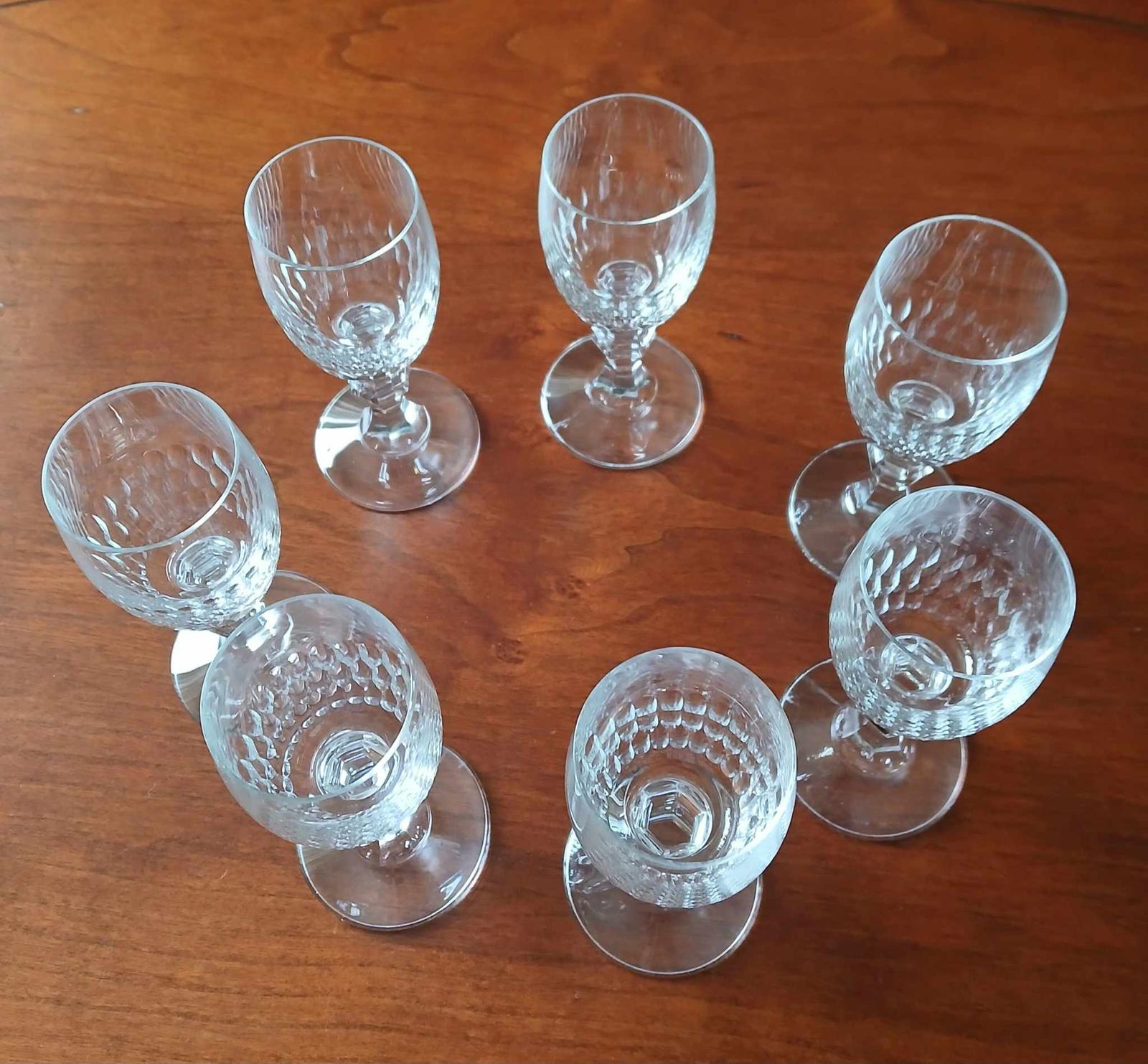 Krásne prepracované poháre na stopke, ktoré majú výšku 11,5cm a objem 60ml. Čistý stav. Cena za 7kusov/10Eur.
