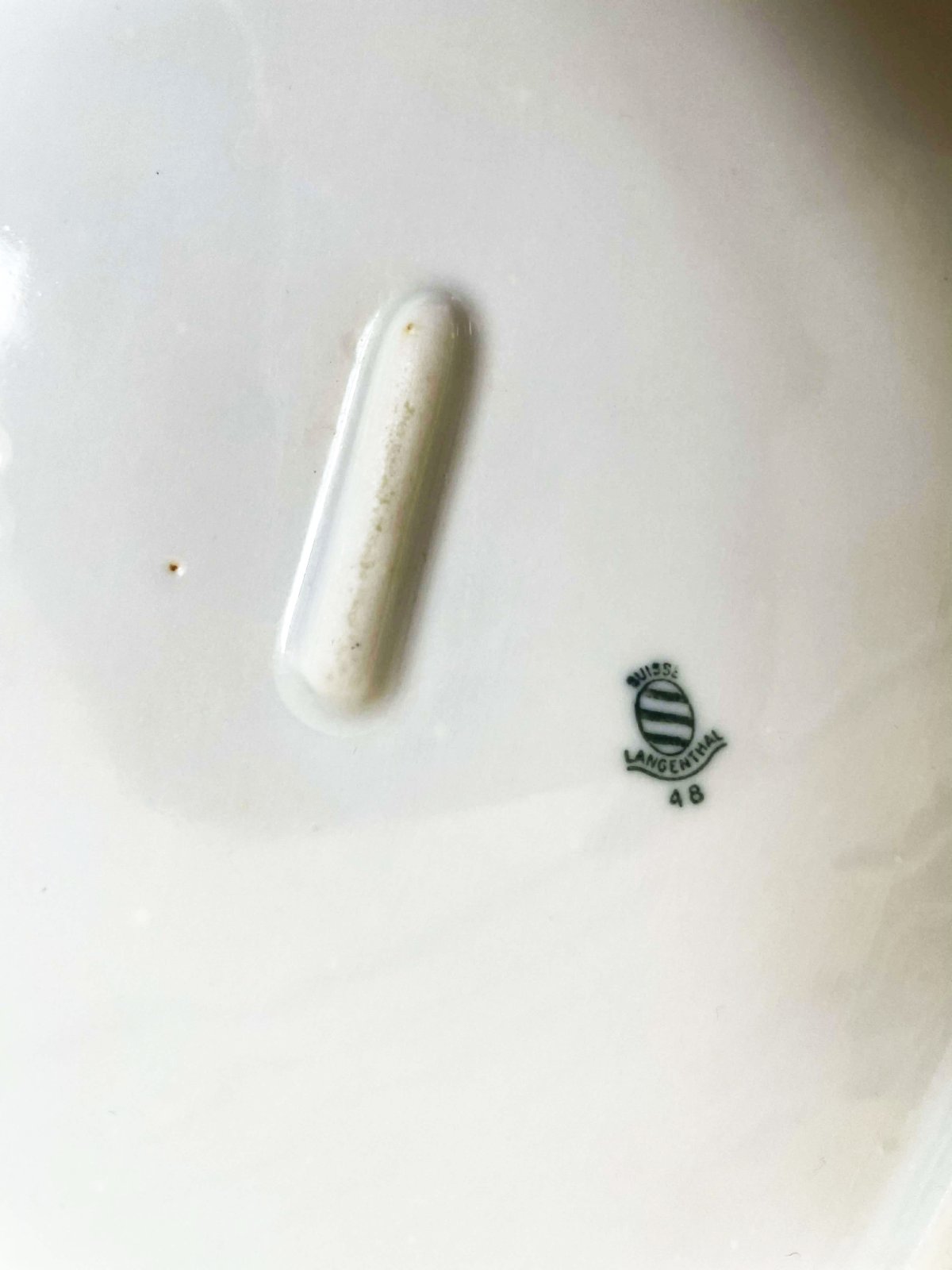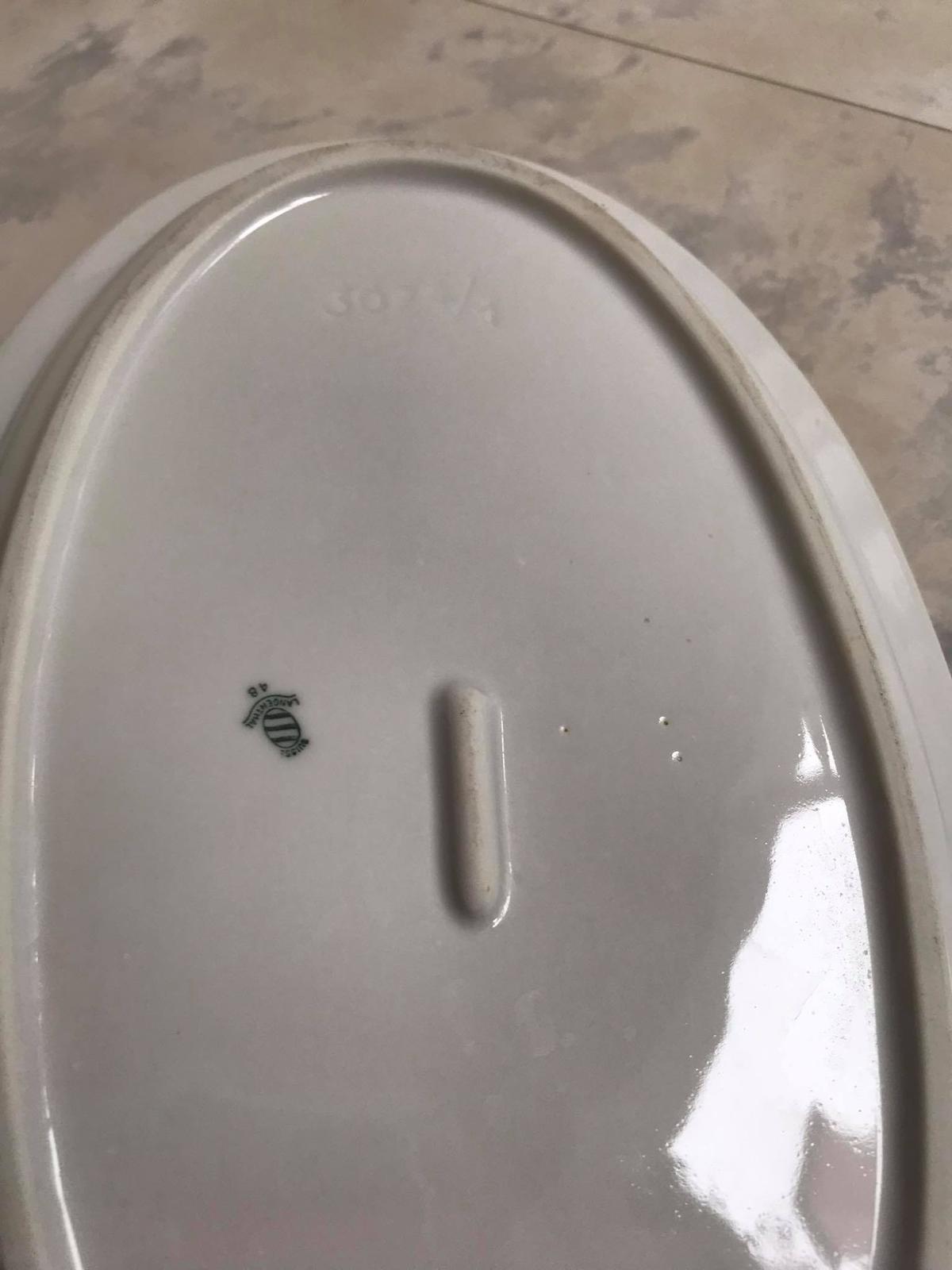 min. používaná zberateľská porcelánová servírovacia misa od švajčiarskej značky Langenthal, vyrobený v roku 1948,30 x 19 cm &