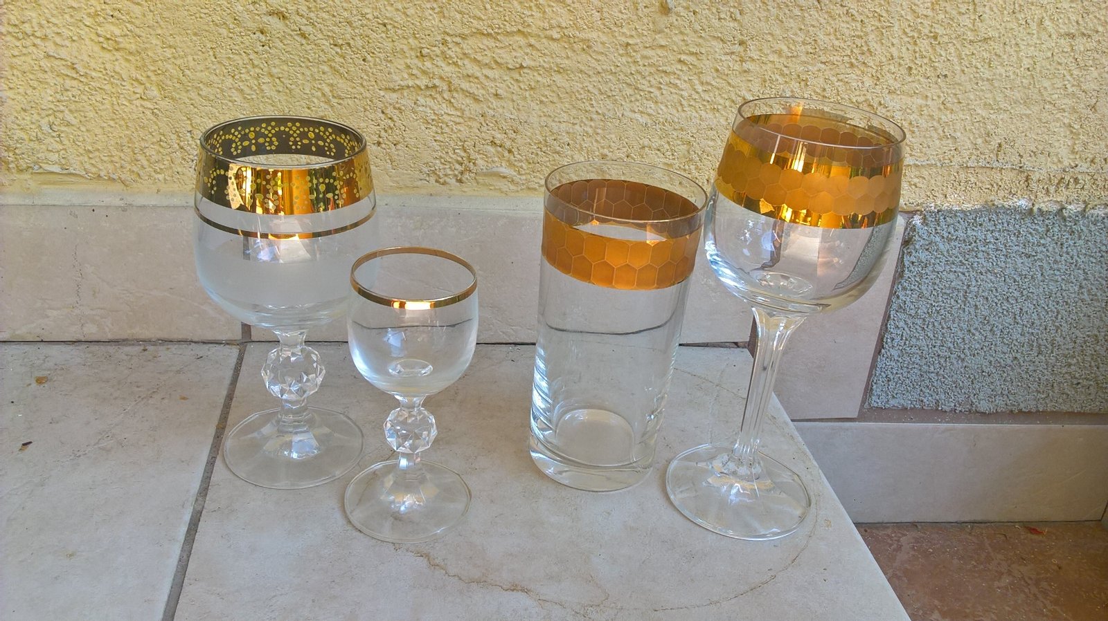 Sady poharov na vino,pivo a stamperliky so zlatym okrajom: