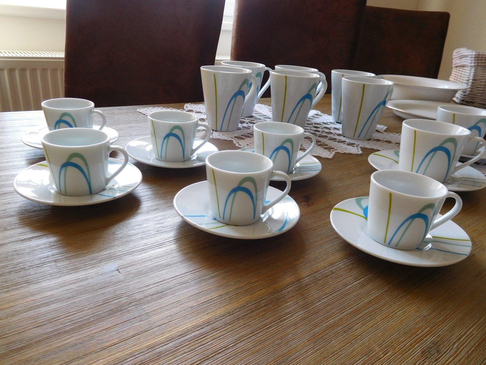 1-čajovú+kávovú súpravu-porcelánovú s modrým motívom