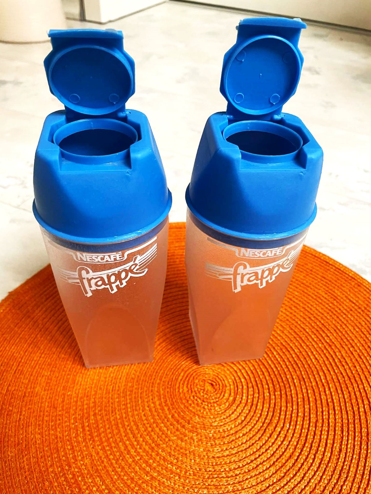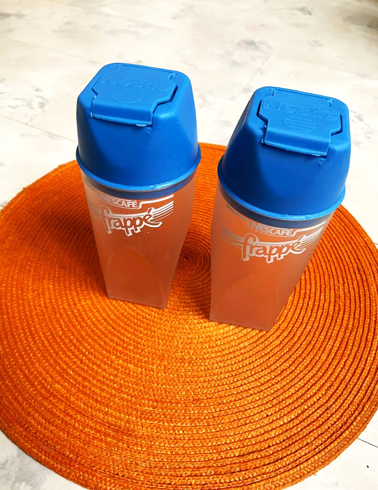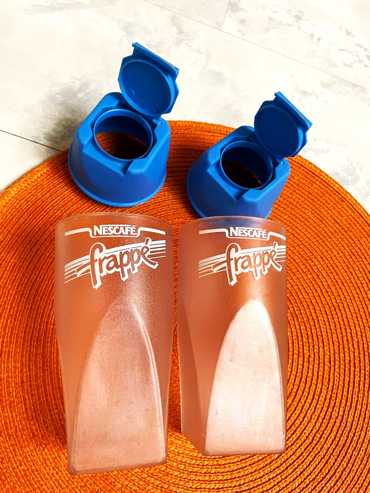 používané ale bez poškodenia,na kávu frappé,alebo mochito,alebo iné,používajú sa samostatne alebo so slamkou,praktické na cestovanie,vytvrdený pevný plast