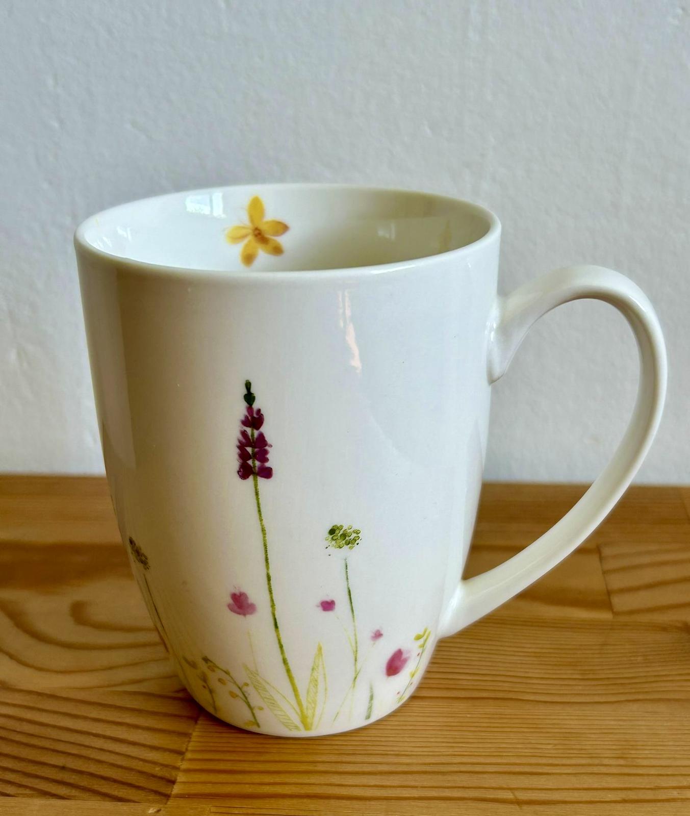 Predám porcelánový hrnček nemeckej značky, kúpený v XXXLutz, objem 350 ml. Vzor jemných kvietkov. Ideálny na rannú kávu alebo čaj. BA alebo poštou+poštovné.