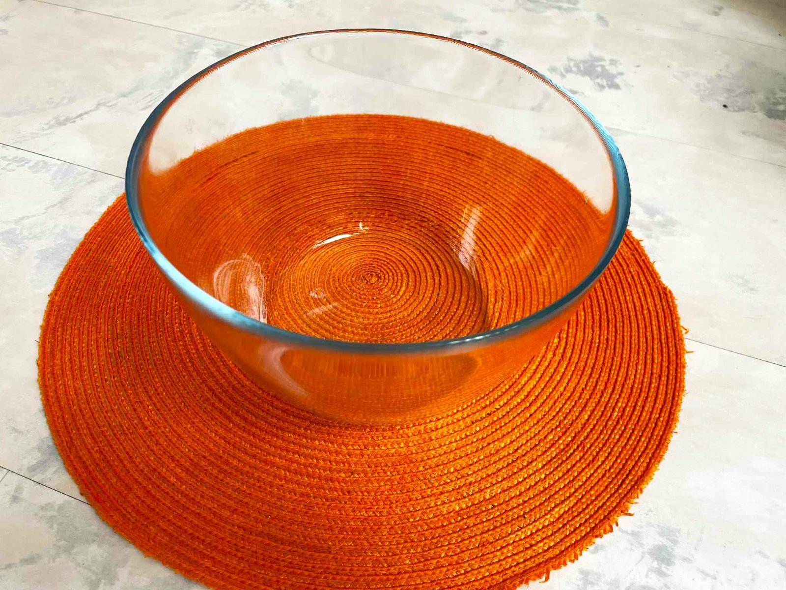 nerozbitná nepoškodená užívaná misa z nerozbitného skla,výška 11 cm, priemer horný 20 cm,na šaláty,na miesenie,na varenie