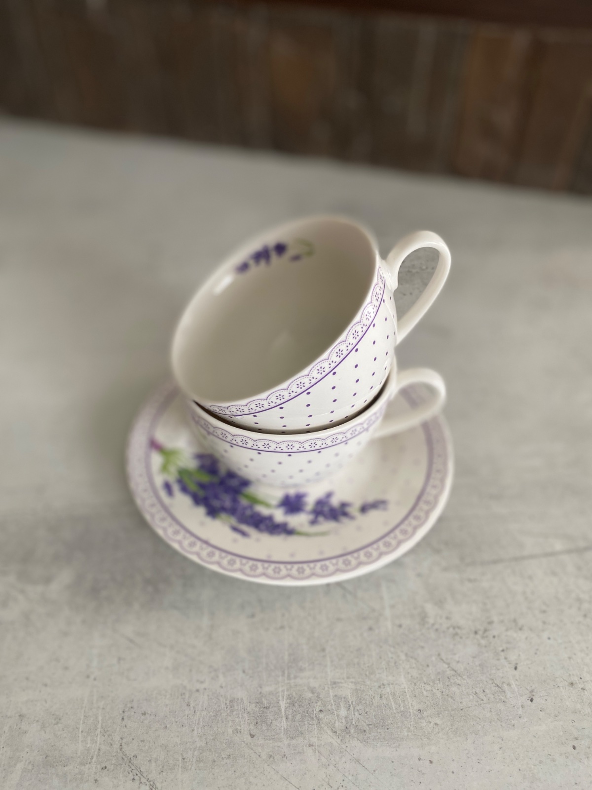 Krásne levanduľové šálky s podšálkami