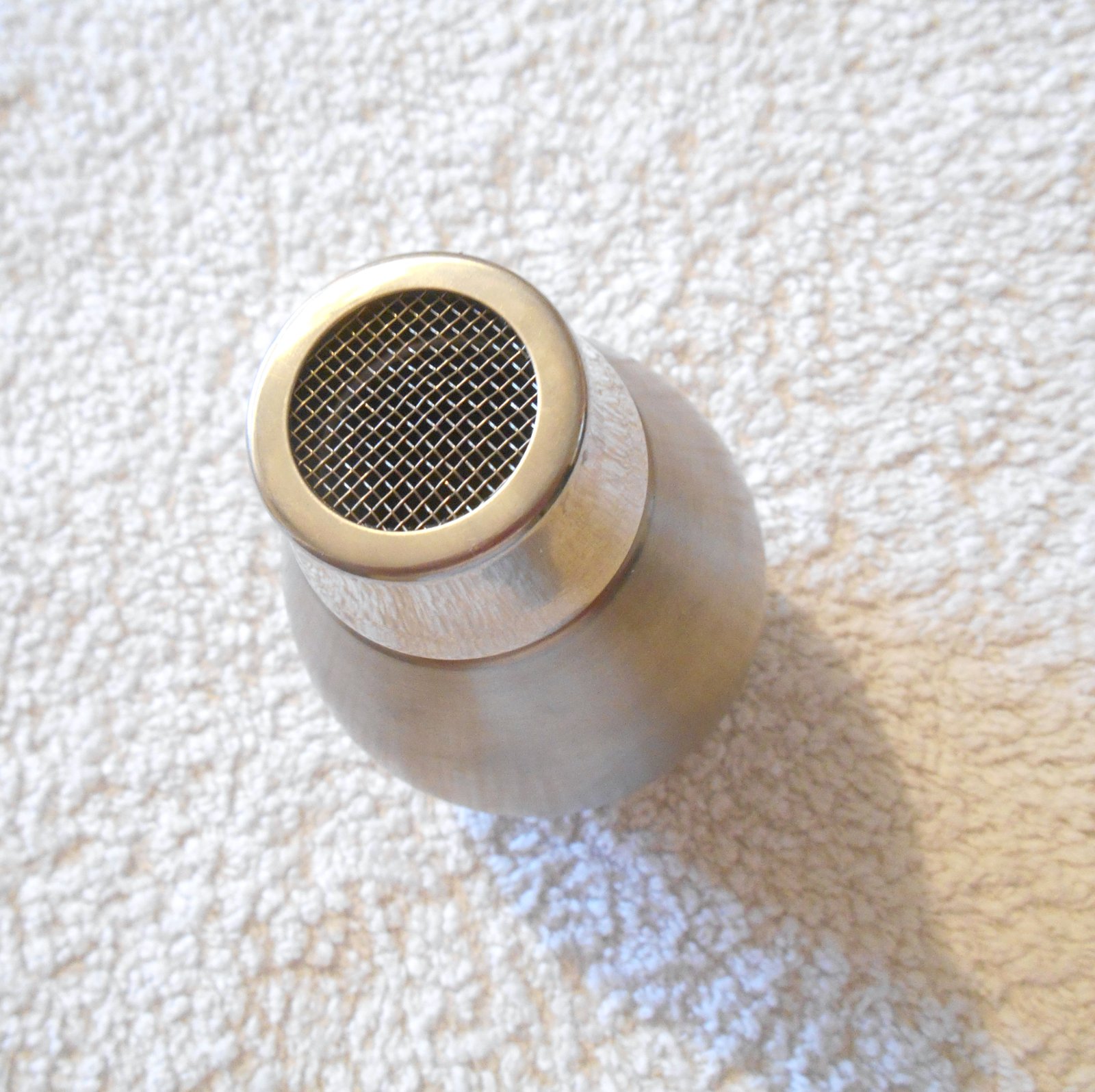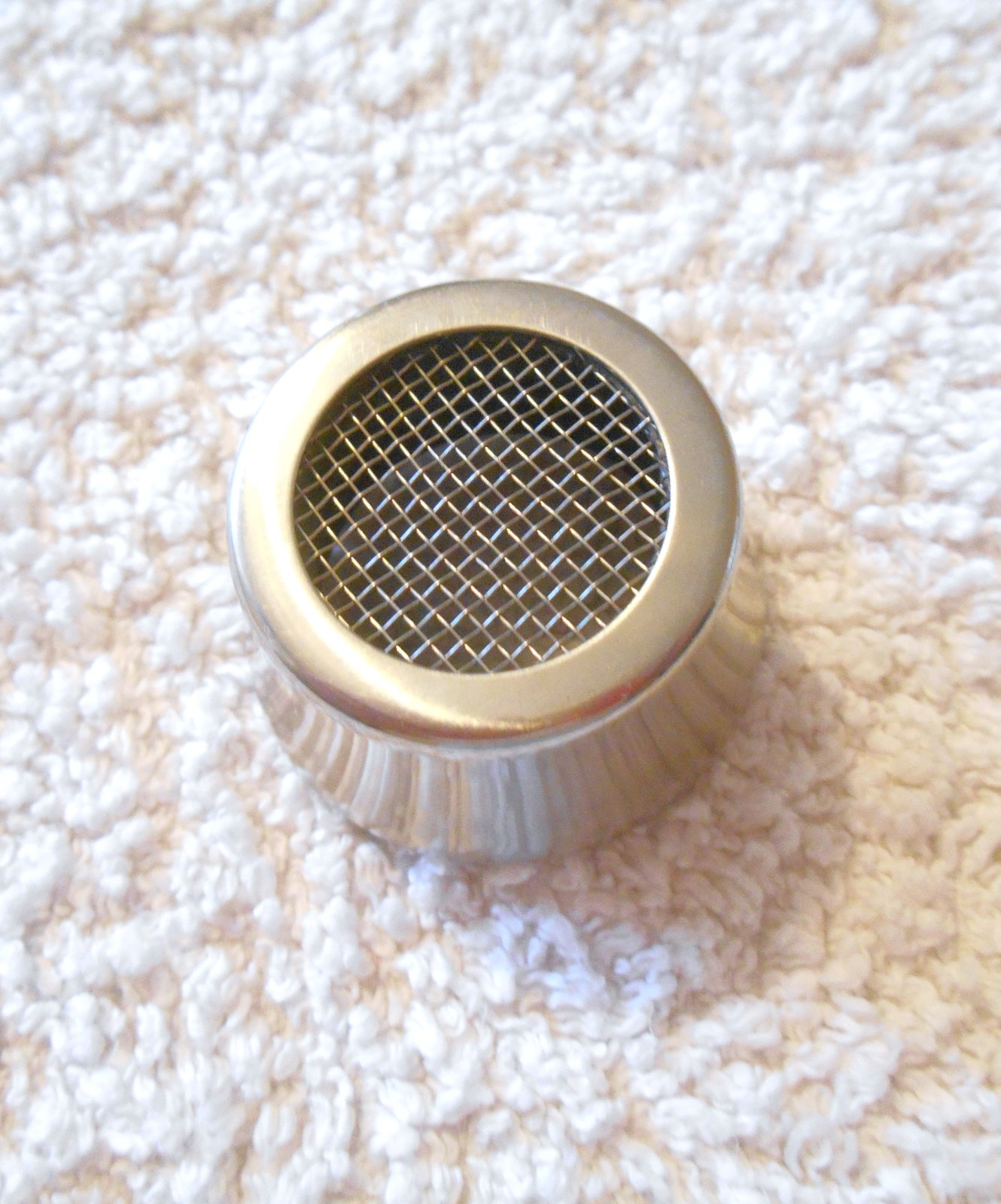 predám nerezovú cukorničku vhodnú na zdobenie cukrom, škoricou, alebo kakaom, dobrý používaný stav, výška 11 cm, obvod 21.5 cm, hmotnosť 88 g