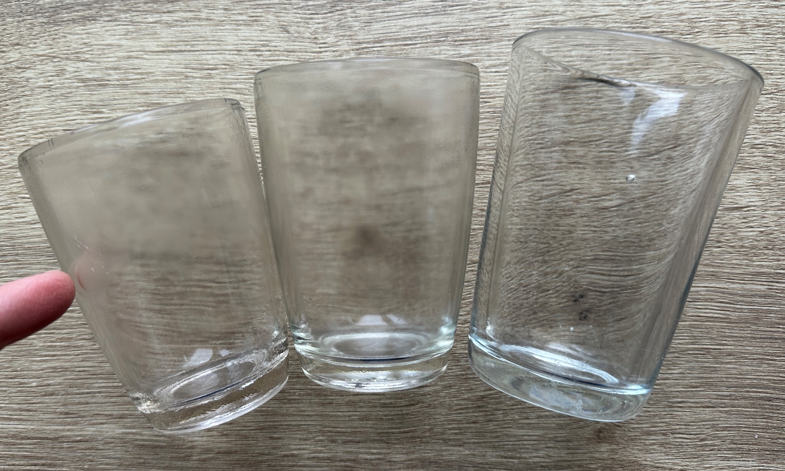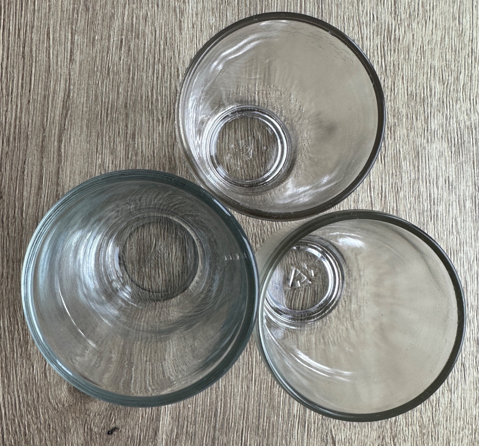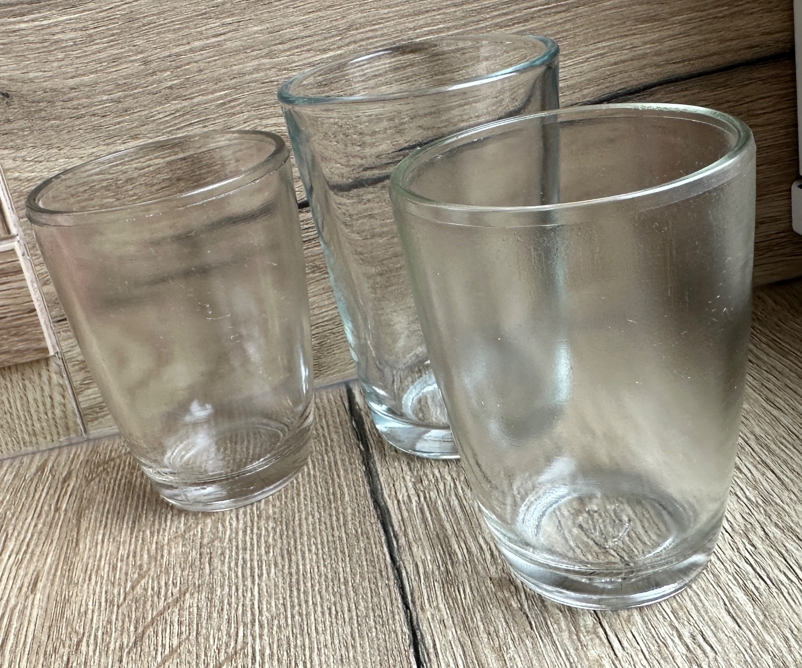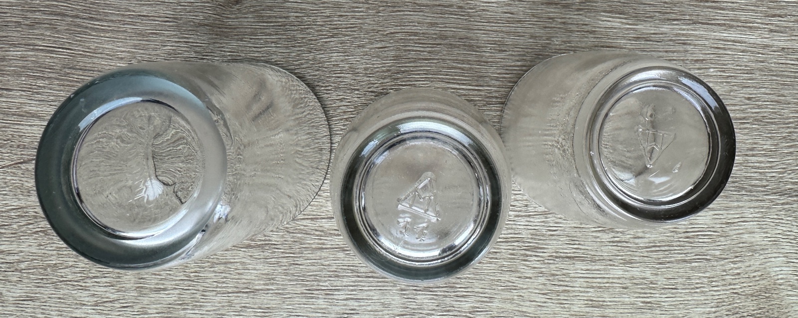 ☘️❤️P/redám pouzivane. 3 retro sklenené poháre – 2× M v trojuholníku, 1× Durit (Rudolfova huť).„Durit“ – to je české/československé sklo zo sklárne Rudolfova huť v Dubí, vyrábali tzv. „duritky“ – odolné poháre a 2x M v trojuholníku , tiez odolné sklo.