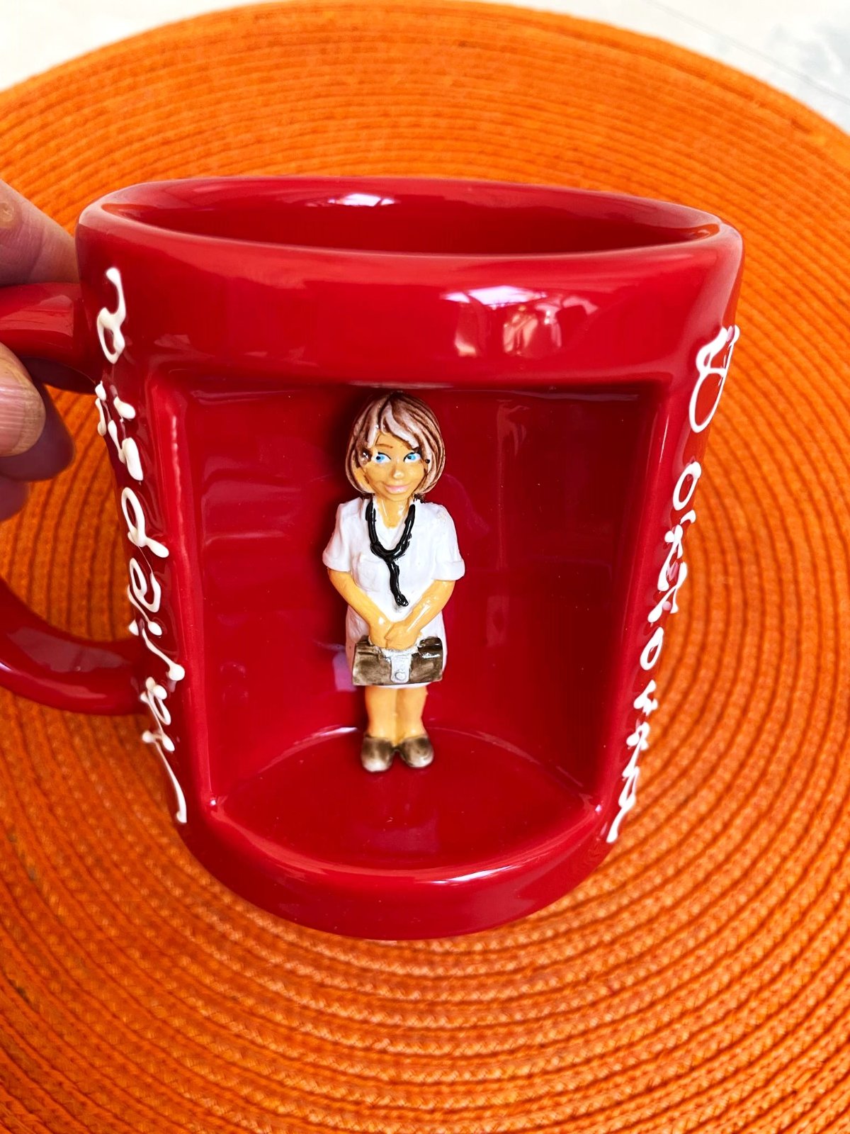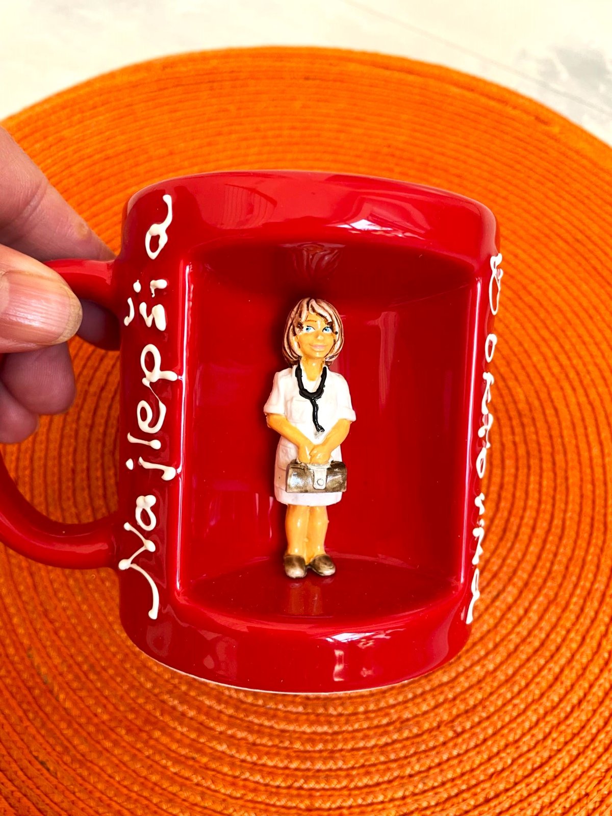 keramická zaujímavá šálka - aj vhodný darček - milý suvenýr,bola iba vystavená,mám aj originál krabičku,pekný prezent pre lekárku,hand made &