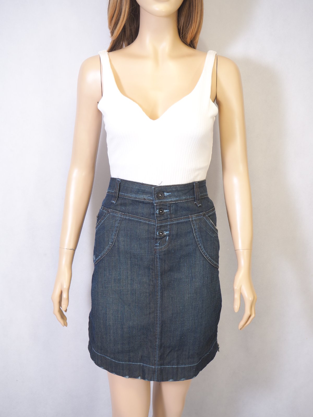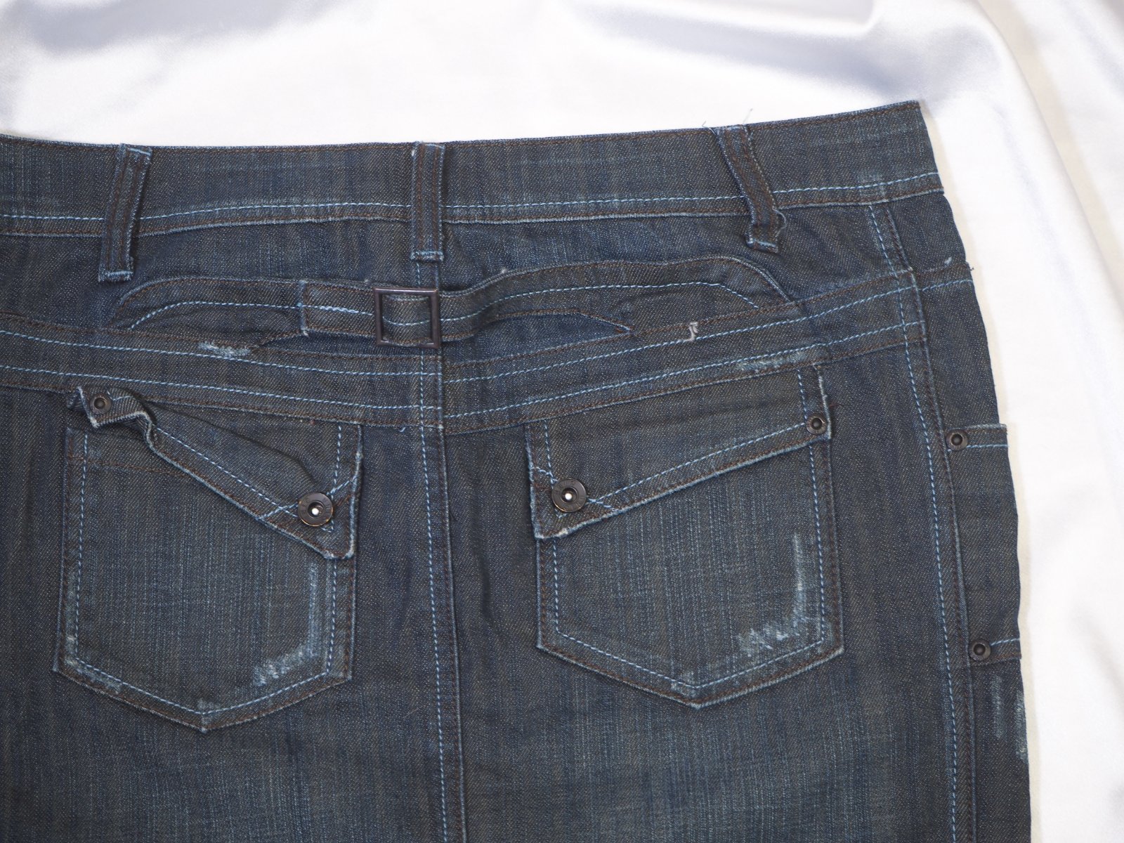 Luxusná riflová sukňa, s bočnými zipsami, vzadu kratšia, materiál 83% bavlna, 15% polyester, 2% elastan, super stav.