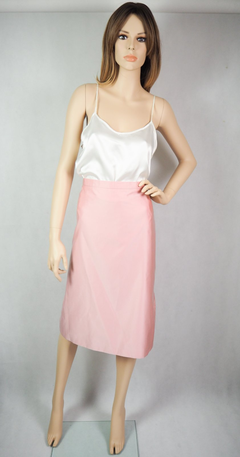 Kvalitná elegatná sukňa bledoružovej farby, podšitá, materiál 100% polyester, podšívka 100% acetát, super stav.