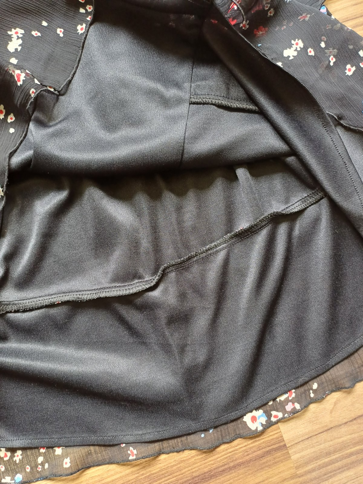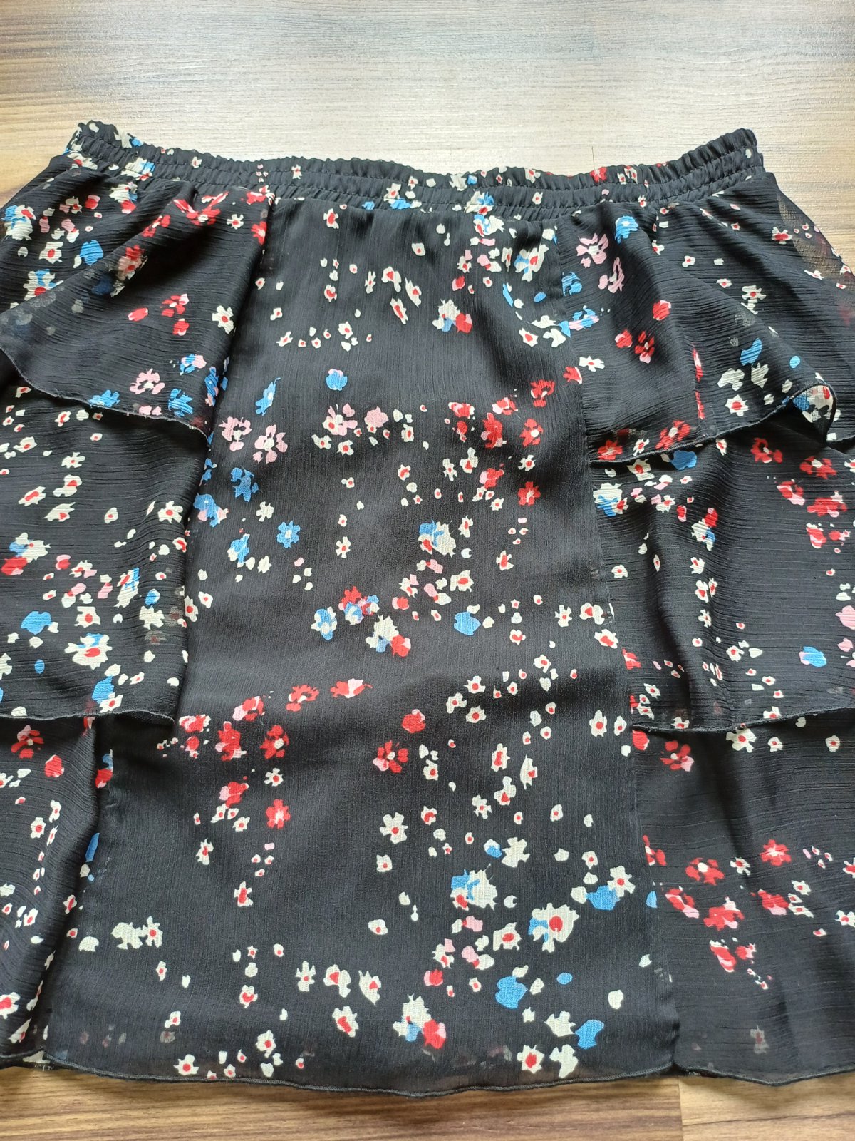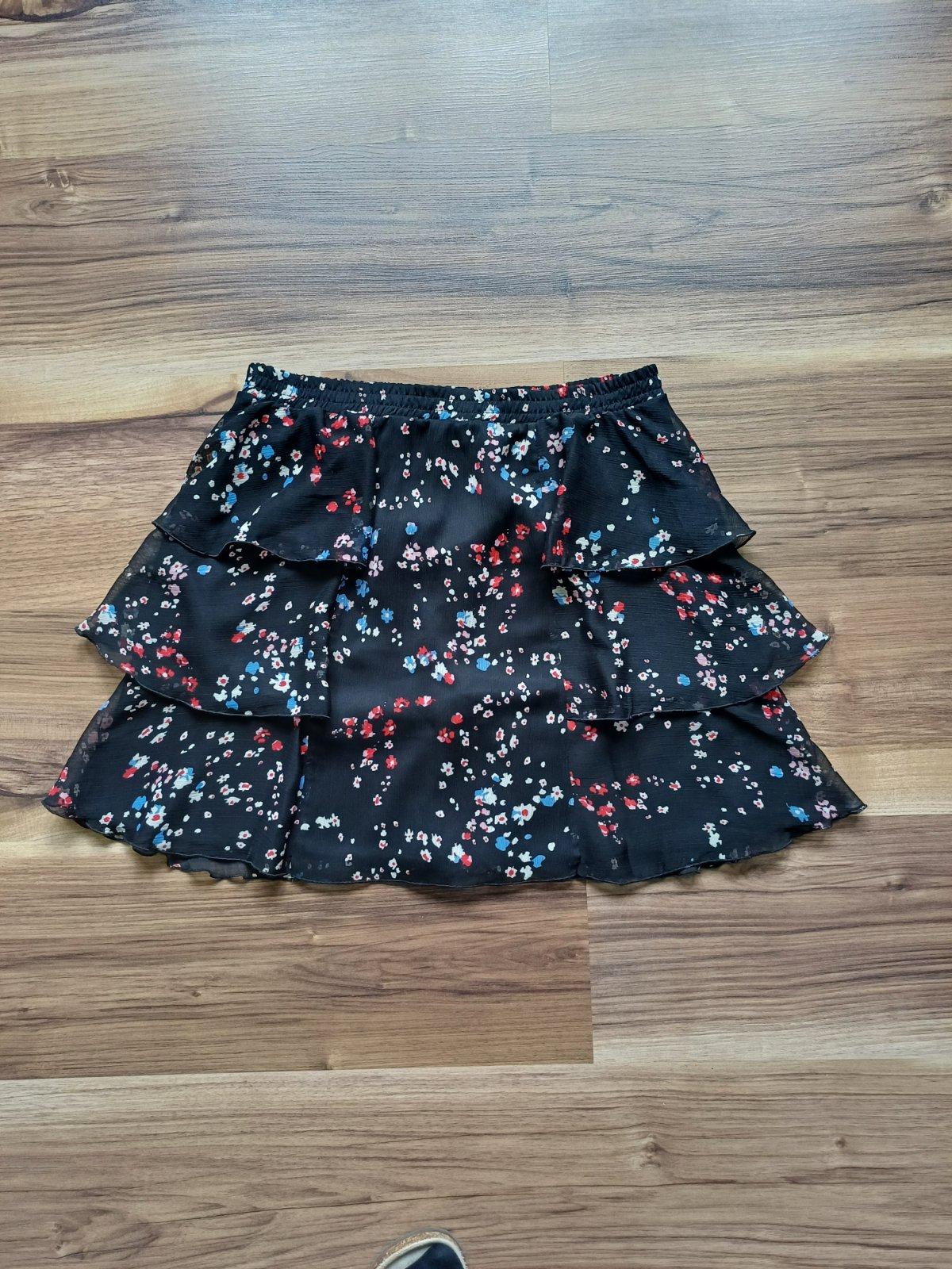 Nevyužitá ľahučká letná sukňa, nepoškodená, výborný stav, pás na pružnú gumu, spodnička, celková dĺžka 42 cm, šírka pásu 2 x 35 cm.