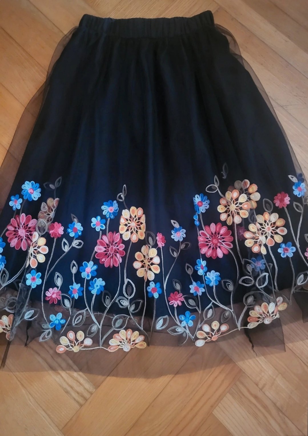 Predám krásnu tylovu sukničku s vyšívanými kvetmi vo veľkosti XS. Je bez akýchkoľvek poškodení, nakoľko som ju mala na sebe 1-krat.