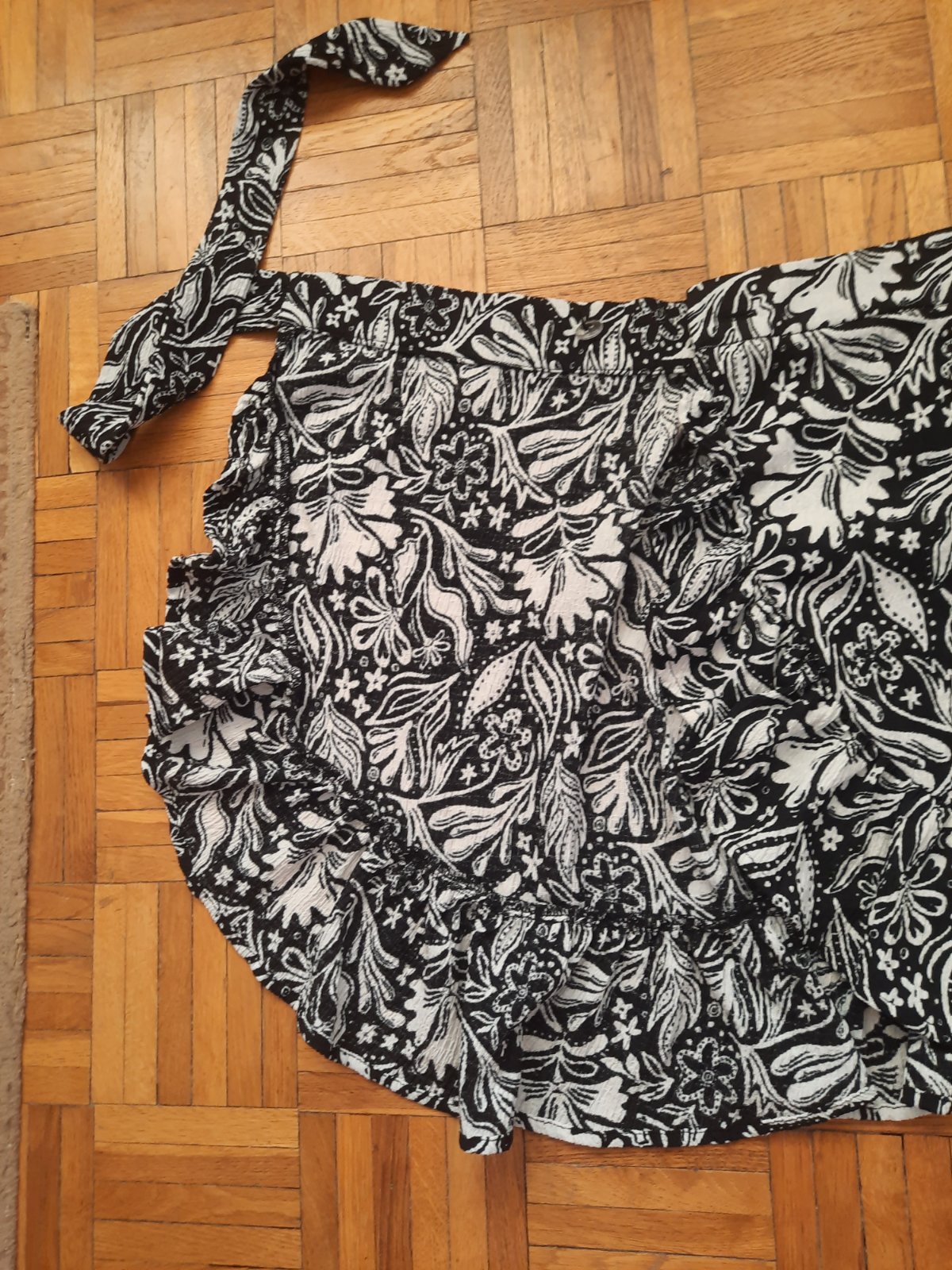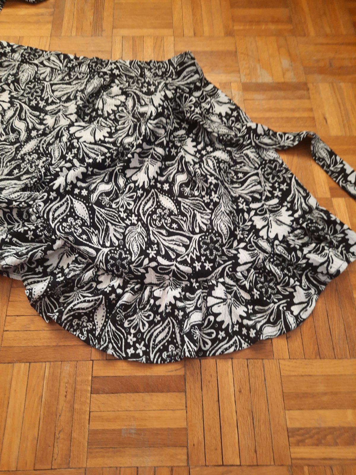 Krásna zavinovacia sukňa z nekrčivého materiálu-pokrčená viskóza. Dole je volán. Z boku sa dajú zaviazať, zvnútra je gombík Top stav. Vhodná pre dámsku aj dievčenskú postavu.