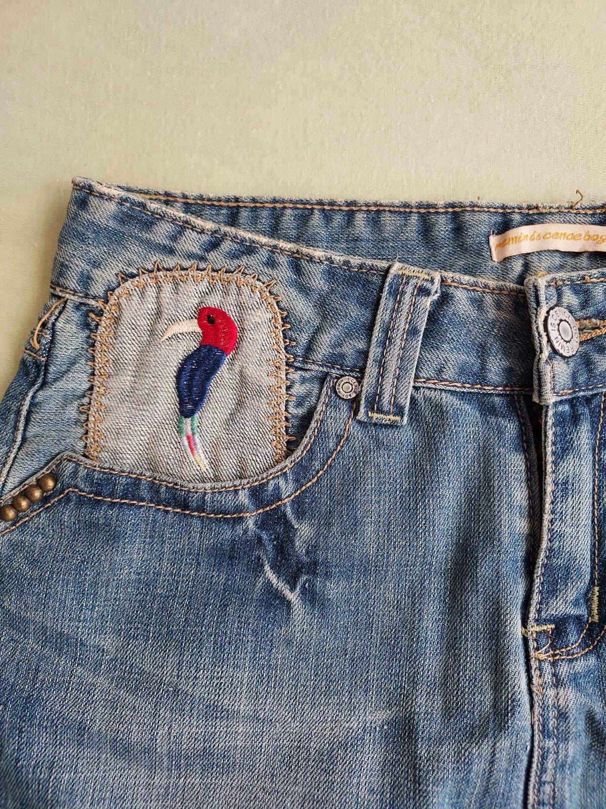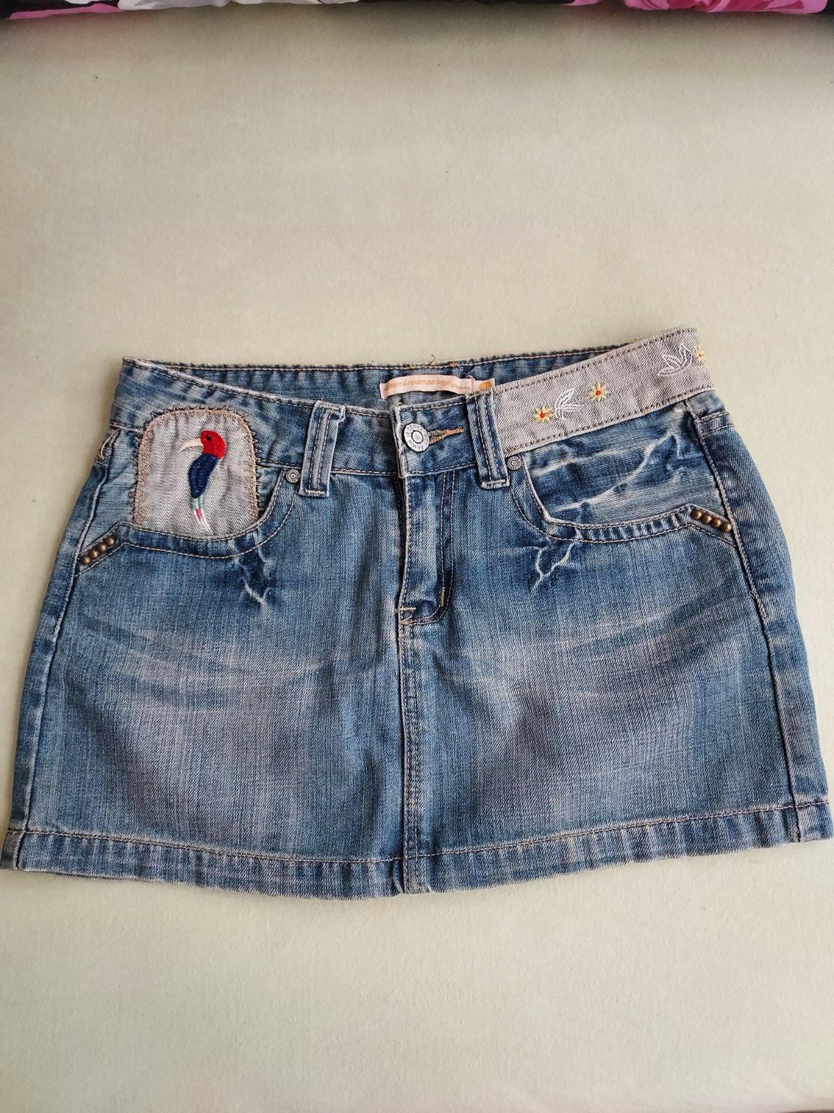 Mini mini suknička. Riflovina v kombinácii s látkou. Veľmi milá. Veľkosť písaná 36.