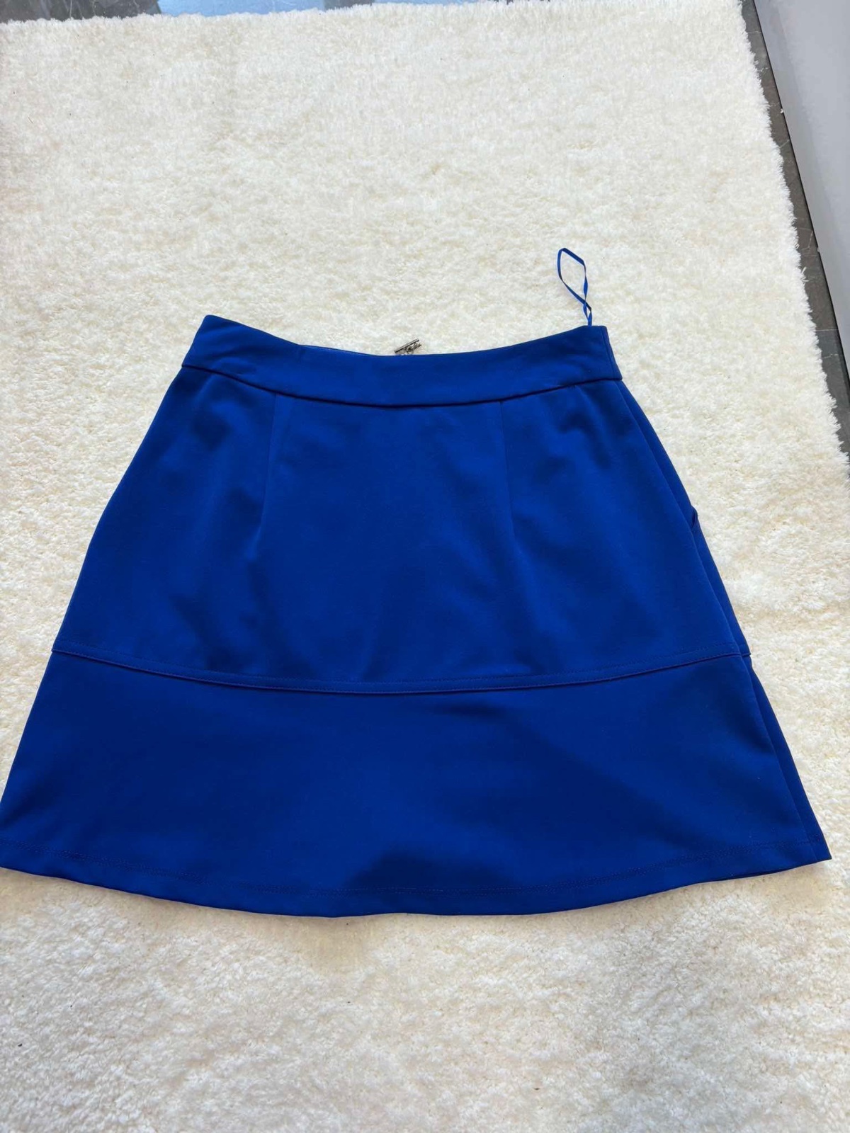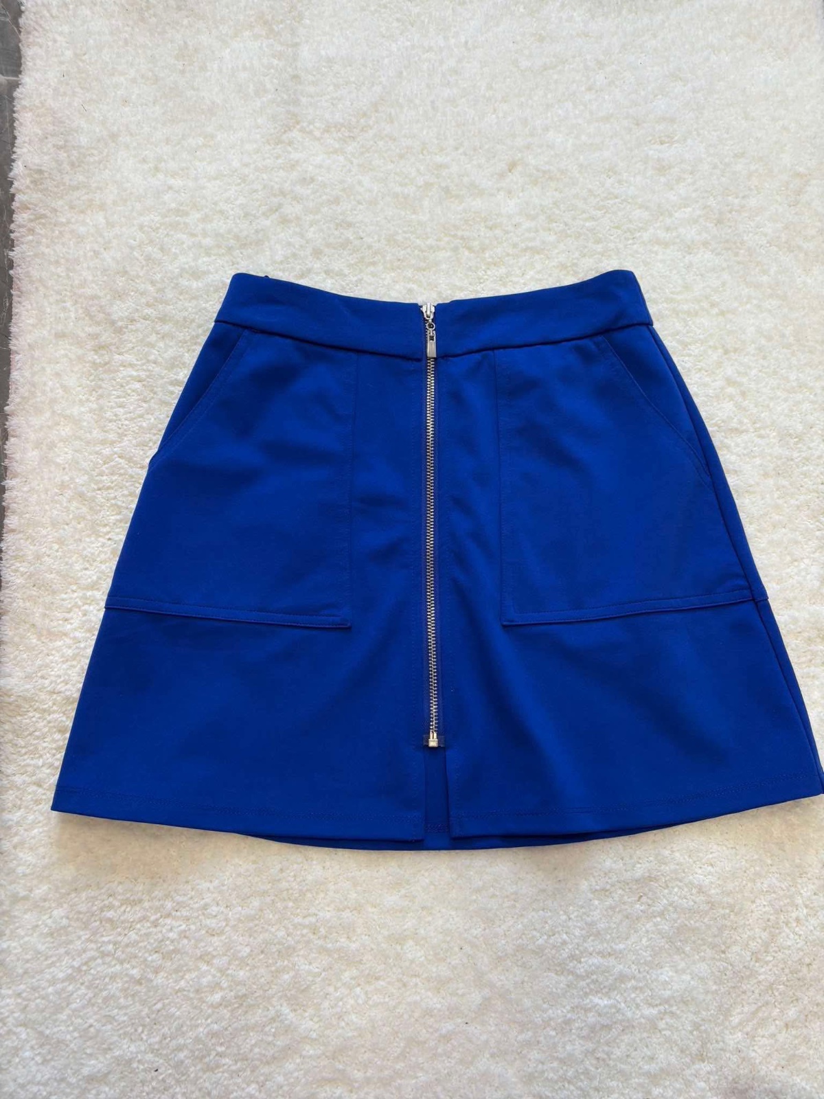 Tulipánová sukňa s vreckami, tmavomodrá, vzadu zips. Bezchybná. Pás 35 cm, dlžka 42 cm. Písaná veľkosť S ale skôr XS.