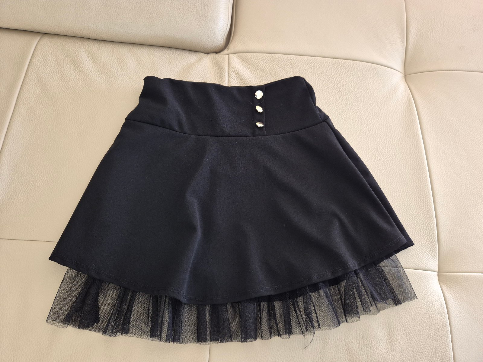 Na predaj pár krát oblečená elegantná čierna sukňa kupovaná v detskom obchode. Veľkosť - na vek 14 - cca 152. Rozmery a stav na foto.