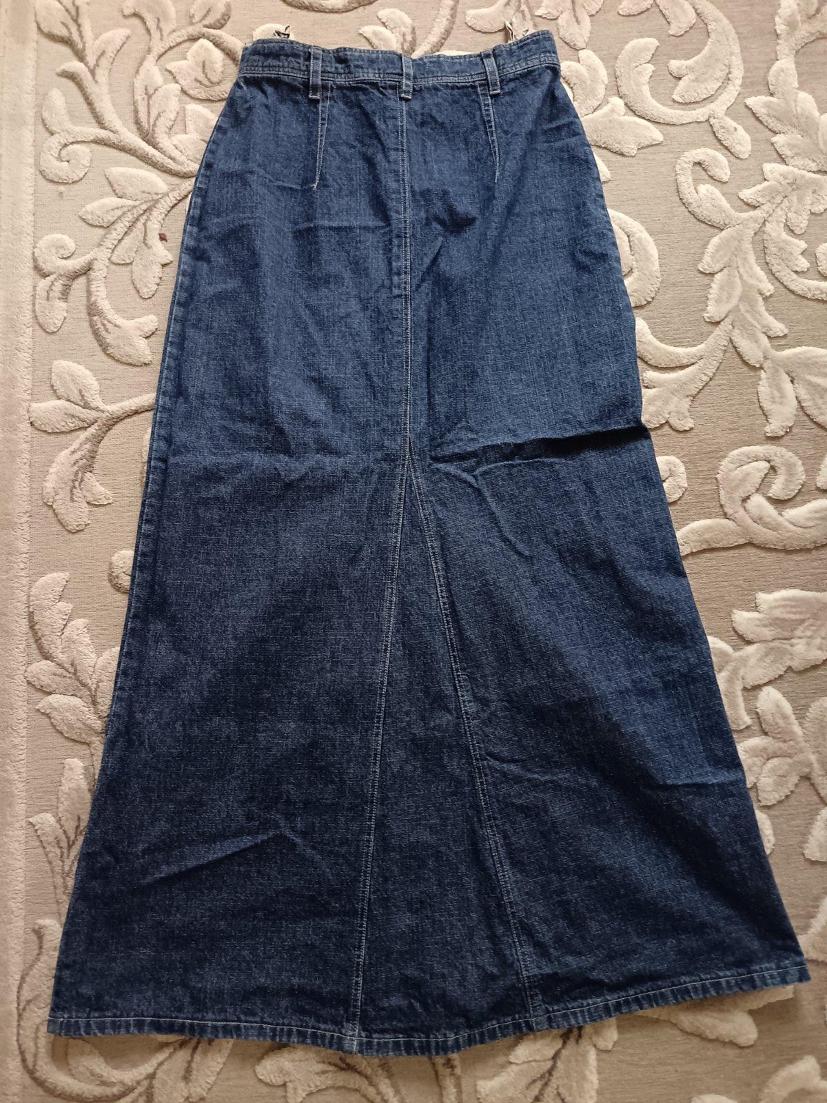 Riflová sukňa, vel.38, dĺžka 94cm, šírka pás 38cm x2, boky 48cm x2. Max zachovalá.