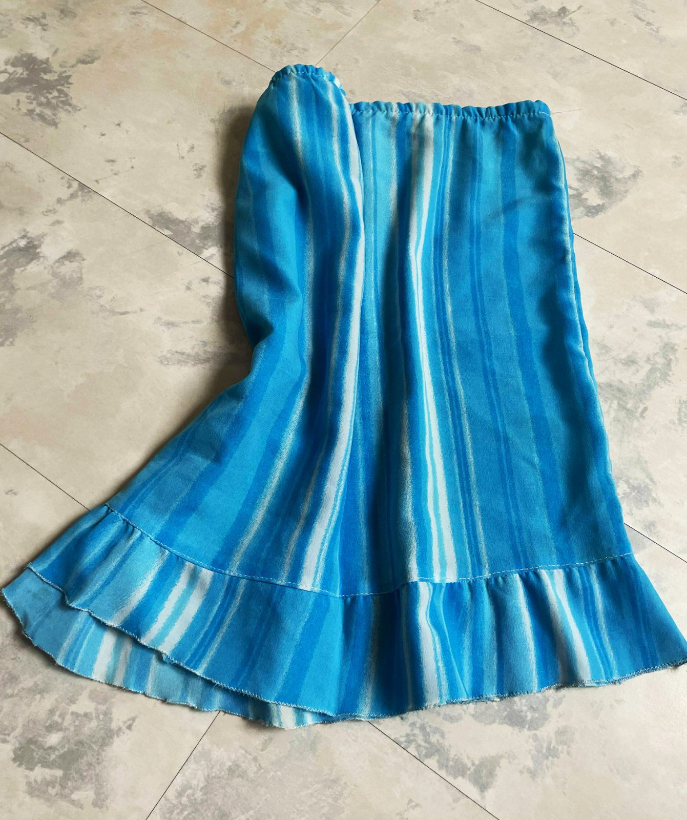 letná pohodlná nekrčivá sukňa,super na leto i na pláž,pás po natiahnutí 80 cm,bez natiahnutia 76 cm, v páse gumička,dlžka = 45 cm,bez podšívky